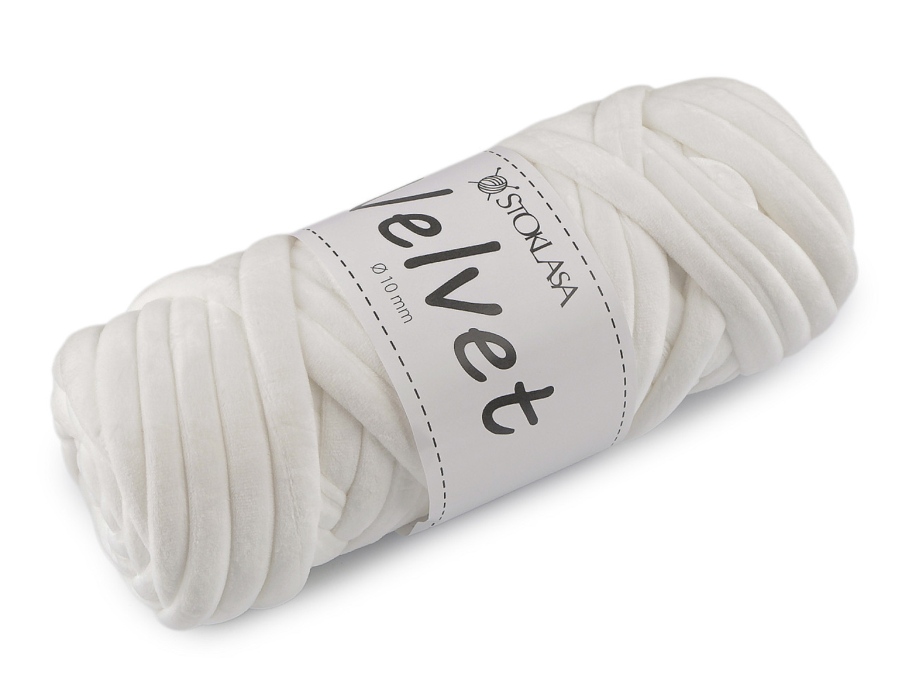 Hrubá priadza Velvet je objemná, mäkká a veľmi príjemná na dotyk. Tvorí ju tunel vyplnený vláknom. Dobre sa vám s ňou bude pracovať veľkými ihlicami alebo rukami . Priadza sa skvele hodí na výrobu objemných diek, maxi prehozov na posteľ, vankúšov a podobných doplnkov. Je vhodná tiež na výrobu rúk a nôh k rôznym postavičkám (napr. škriatkom, bábikám či anjelom).