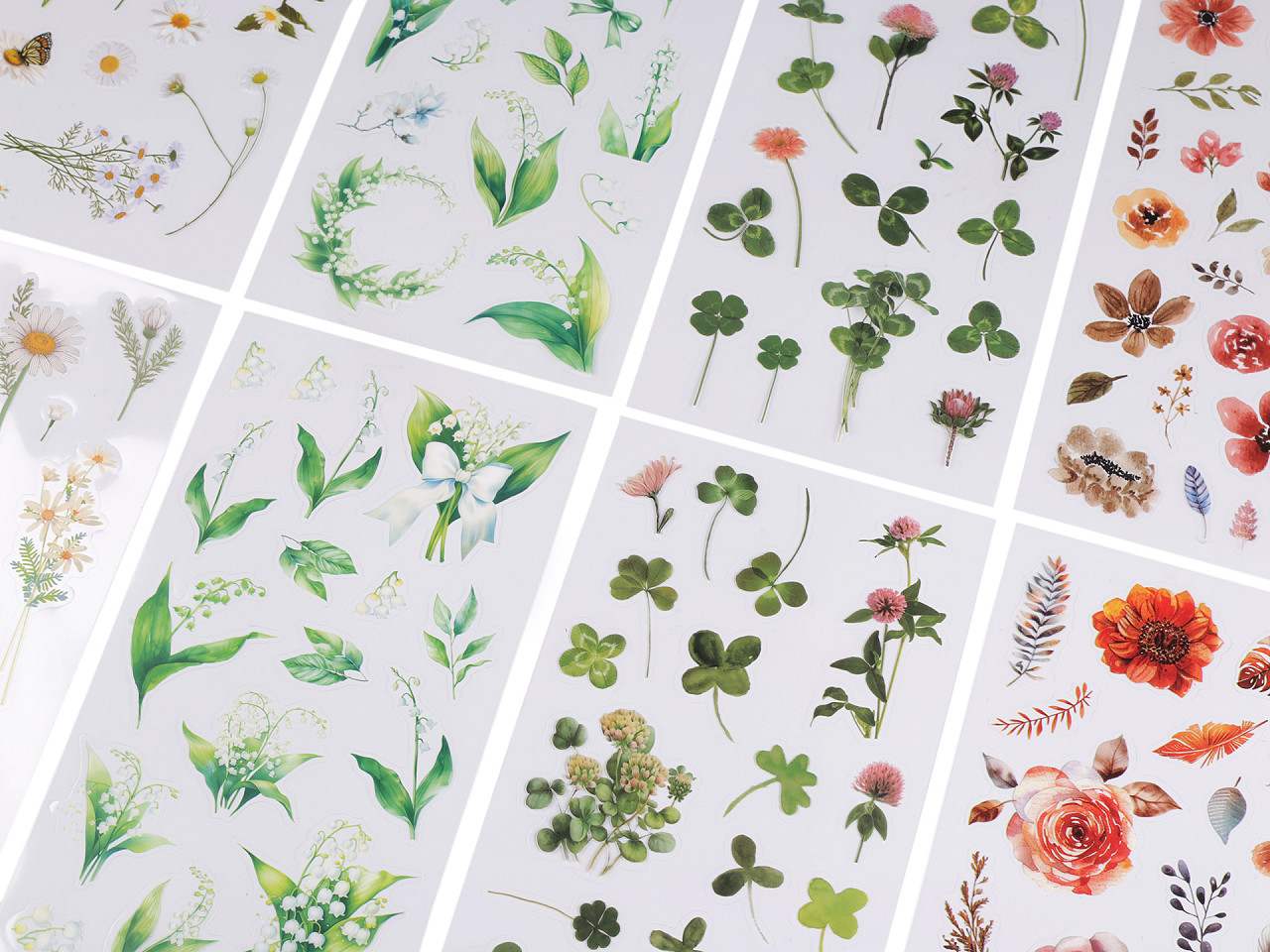 Samolepky s motívmi kvetov sú kvalitne, detailne spracované. Sada obsahuje 6 aršíkov transparentných samolepiek rôznych motívov kvetov, ktoré zachytávajú krásu a eleganciu prírodných kompozícií. Krásne vyniknú nalepené napríklad na pohároch. Deťmi sú samolepky obľúbené na zdobenie zošitov, prianí, pozvánok, krabičiek, fotoalbumov, darčekov a pod. S obľubou ich využívajú aj učitelia ako motivačnú odmenu pre svojich žiakov. Samolepky sú nalepené na jednom archu transparentnej podkladovej fólie, z ktorej ich stačí sňať. Odporúčame ich lepiť na suchý, hladký a pevný povrch.
