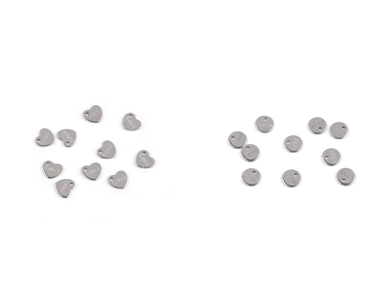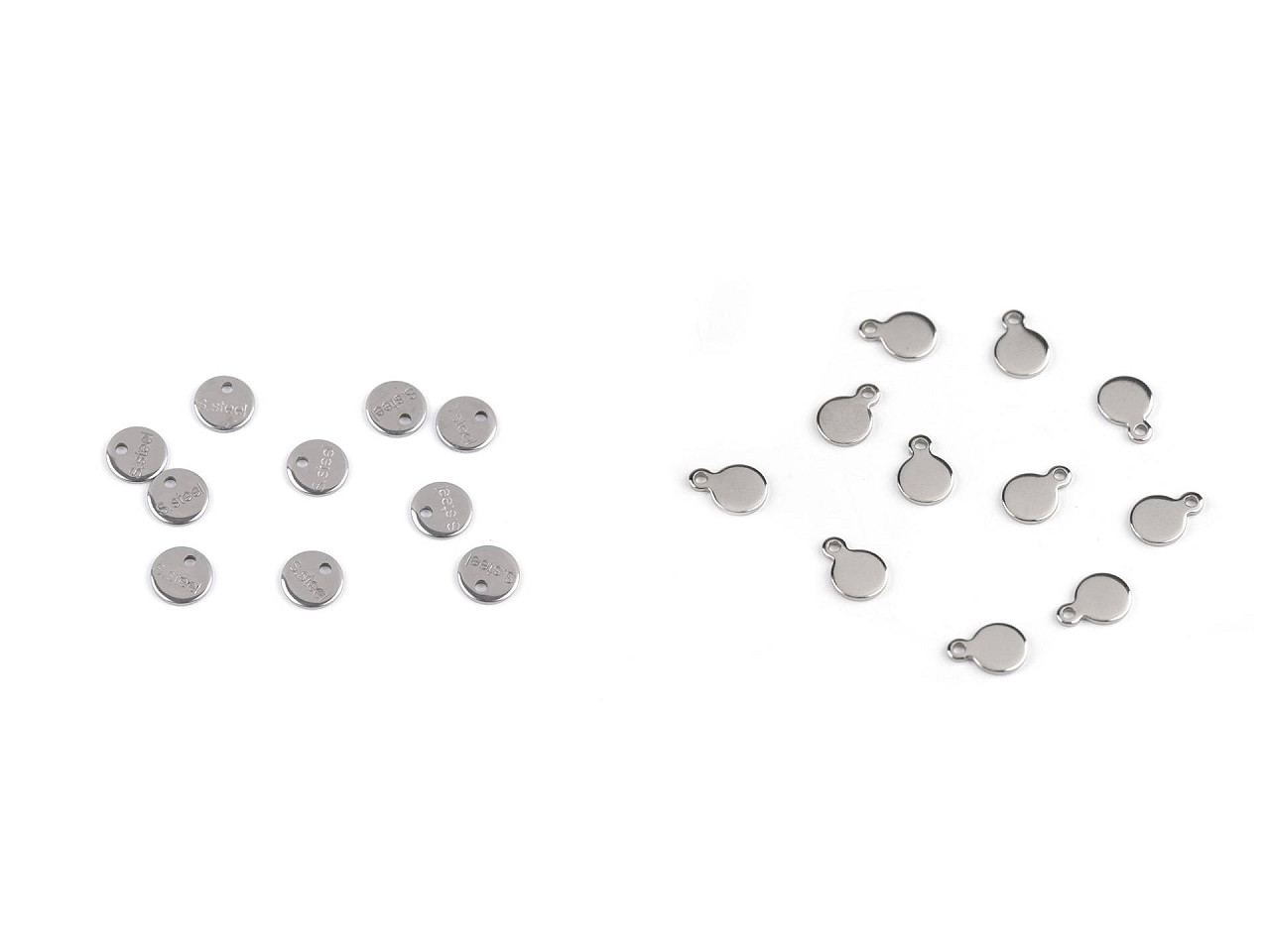 Mini prívesok vhodný na predlžovaciu retiazku z kvalitnej nerezovej ocele sa hodí na výrobu šperkov. Je jednostranný, má vysoký zrkadlový lesk . Prívesky č. 1 a 2 majú z jednej strany nápis S. steel. Hodia sa na označenie šperkov z nerezovej ocele. Sú vhodné aj ako ozdoba na odevy, tašky a kabelky. Prievlak otvoru je 1 mm.
