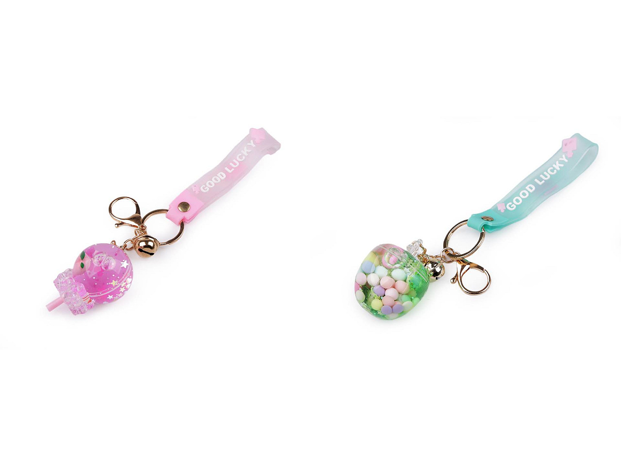 Prívesok v tvare jablka, lízanky alebo drinku ocenia predovšetkým deti. S obľubou ho nosia na kľúčoch, batohoch, taškách a pod. Vnútri má tekutinu , v ktorej sa prelievajú flitre a tvary. Na krúžku na kľúče má pripevnenú karabínu, rolničku a silikónové pútko na ruku. Na pútku je nápis "good lucky".