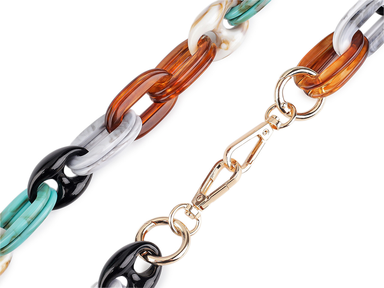 Plastová reťaz je výrazný módny prvok, ktorý kombinuje štýl a funkčnosť. Využijete ju na puzdrá mobilných telefónov, ale aj na menšie kabelky. Pripevníte ju vďaka praktickým karabínam.
