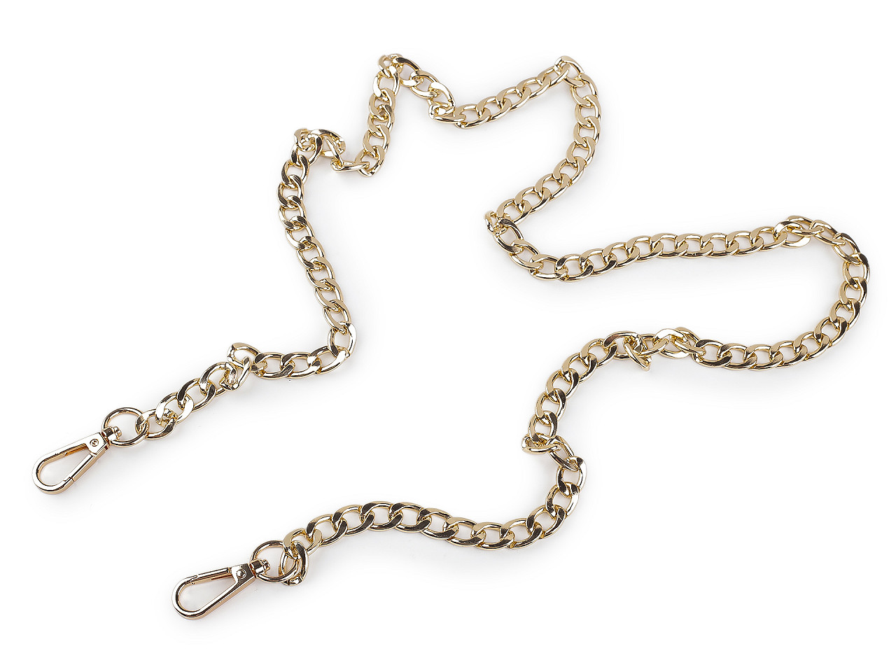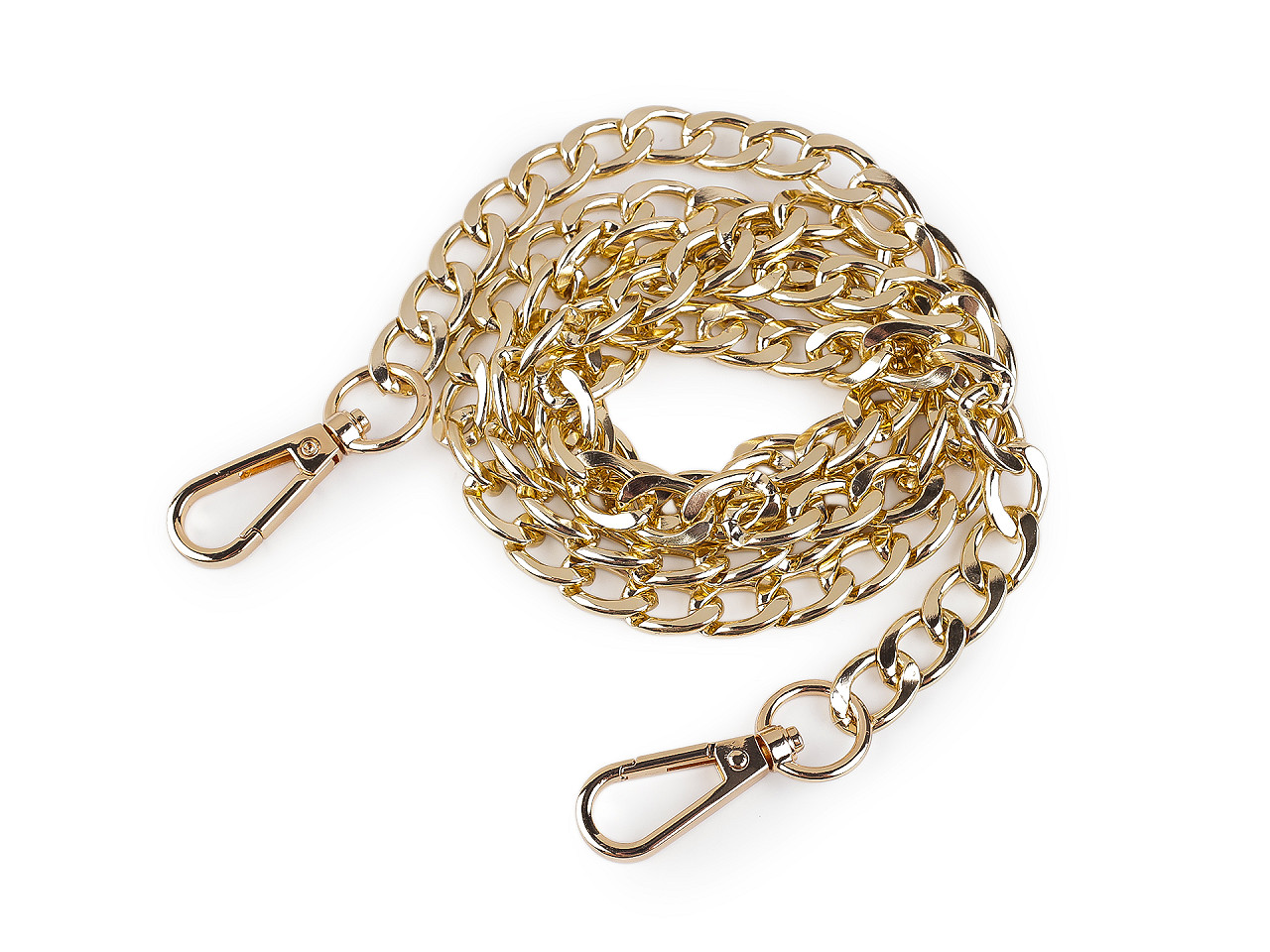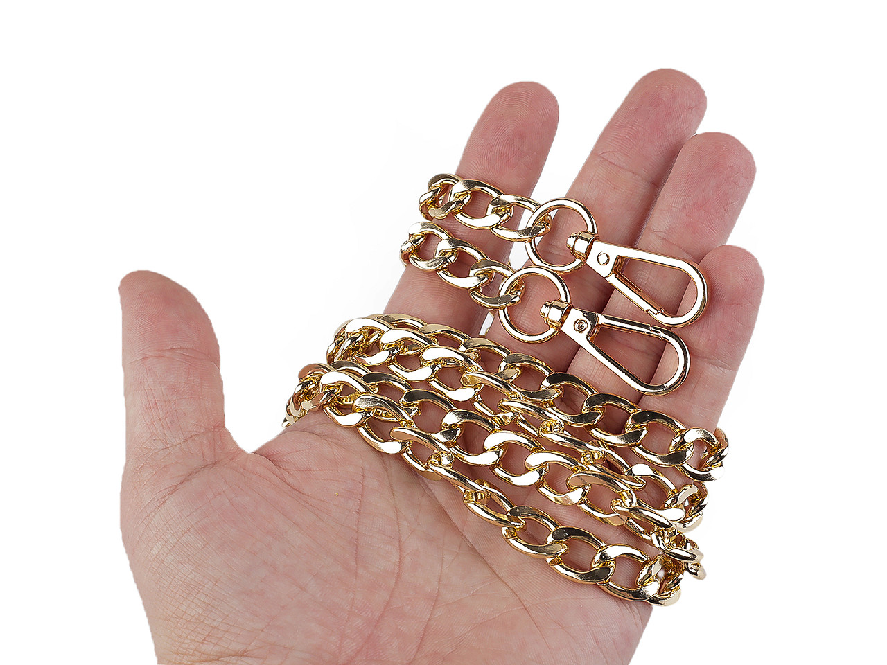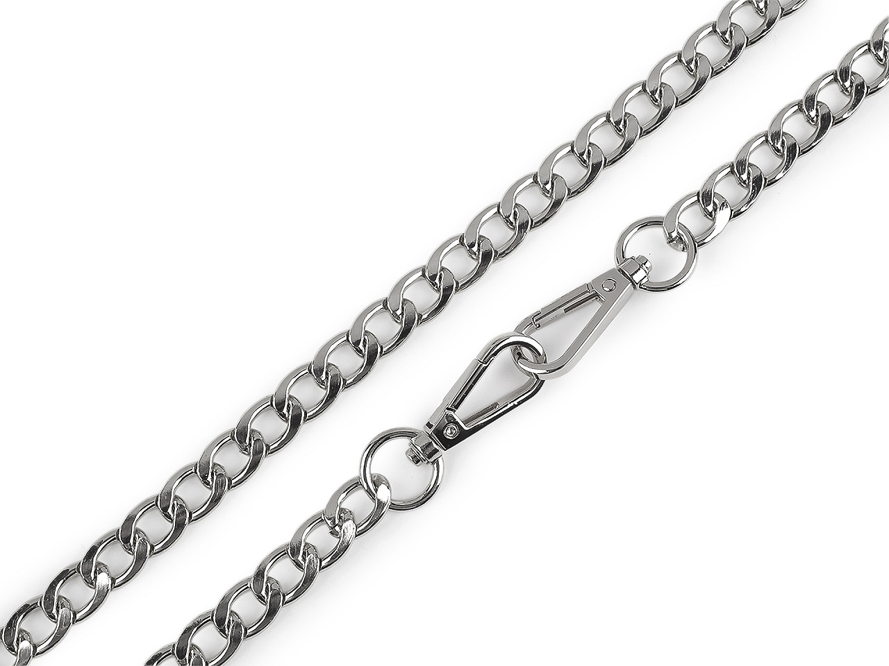 Kovová retiazka s veľkými očkami sa skvele hodí k listovým kabelkám, menším kabelkám alebo púzdram na mobilné telefóny. Na oboch jej koncoch nájdete pripevnené karabínky.