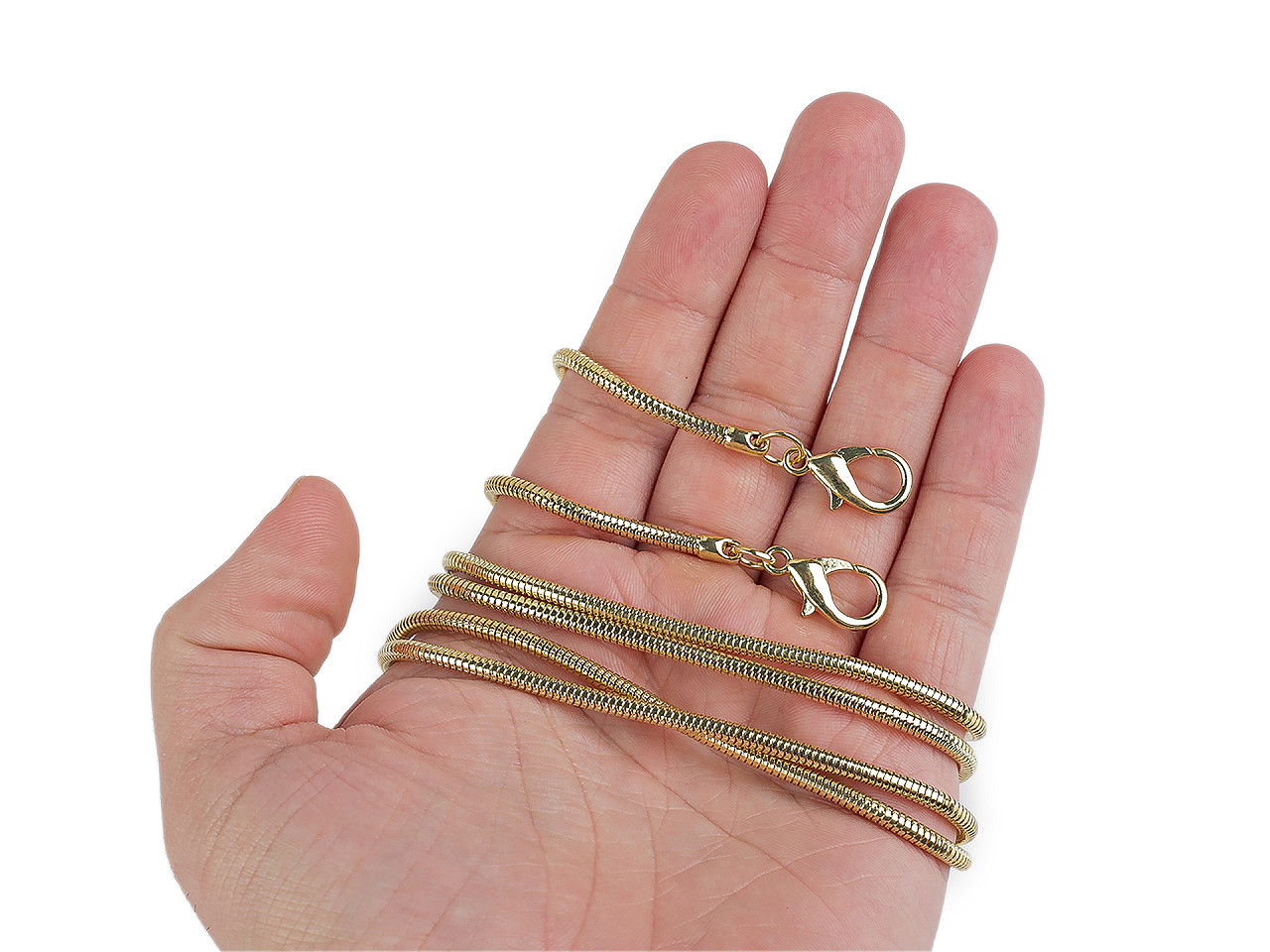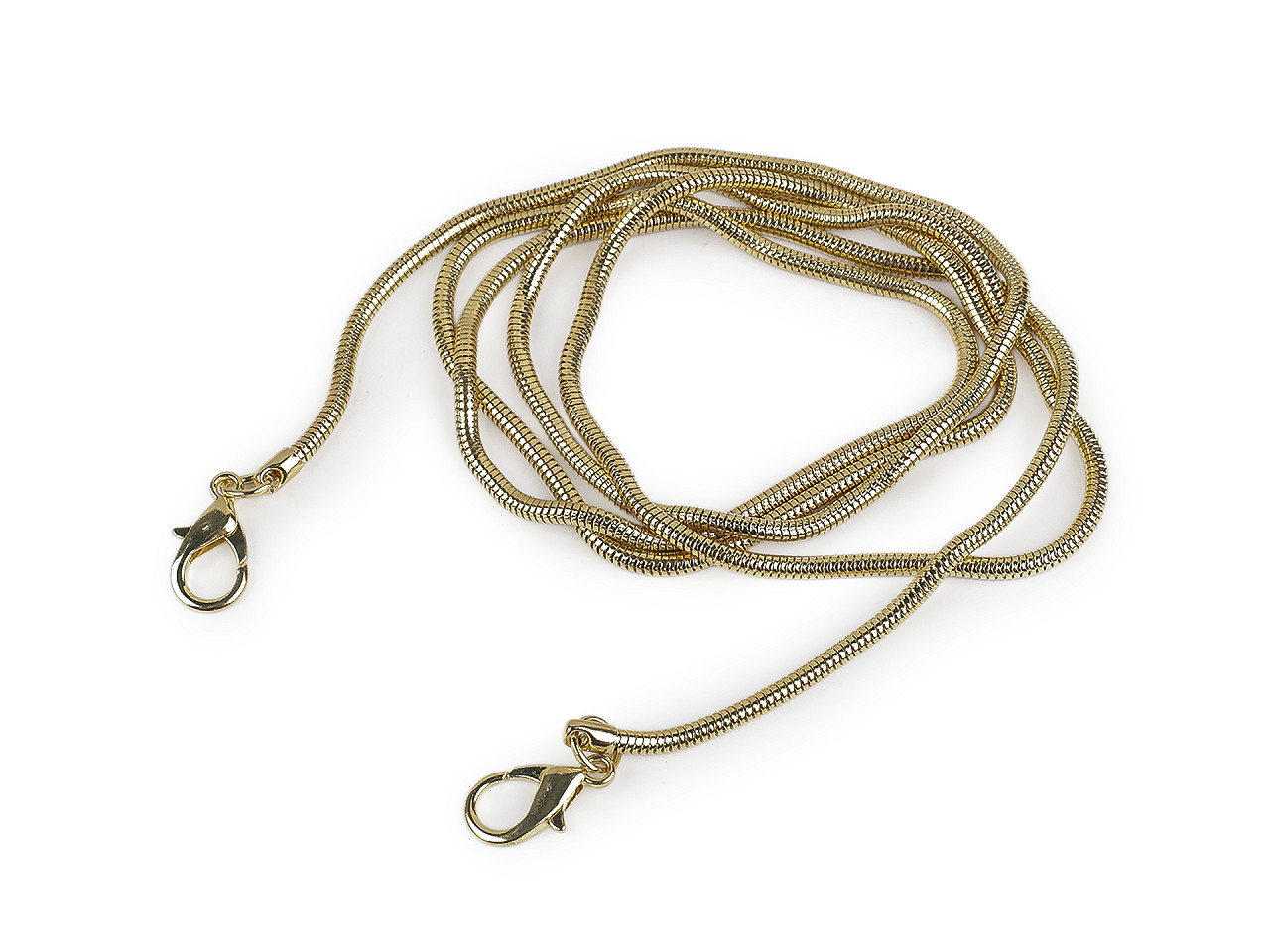 Kovovú retiazku v hadom dizajne využijete na kabelky a listové kabelky. Karabínky umožňujú jeho rýchle a jednoduché pripevnenie. Retiazka je okrúhla a svojím spracovaním pripomína hada a pohyby jeho tela.