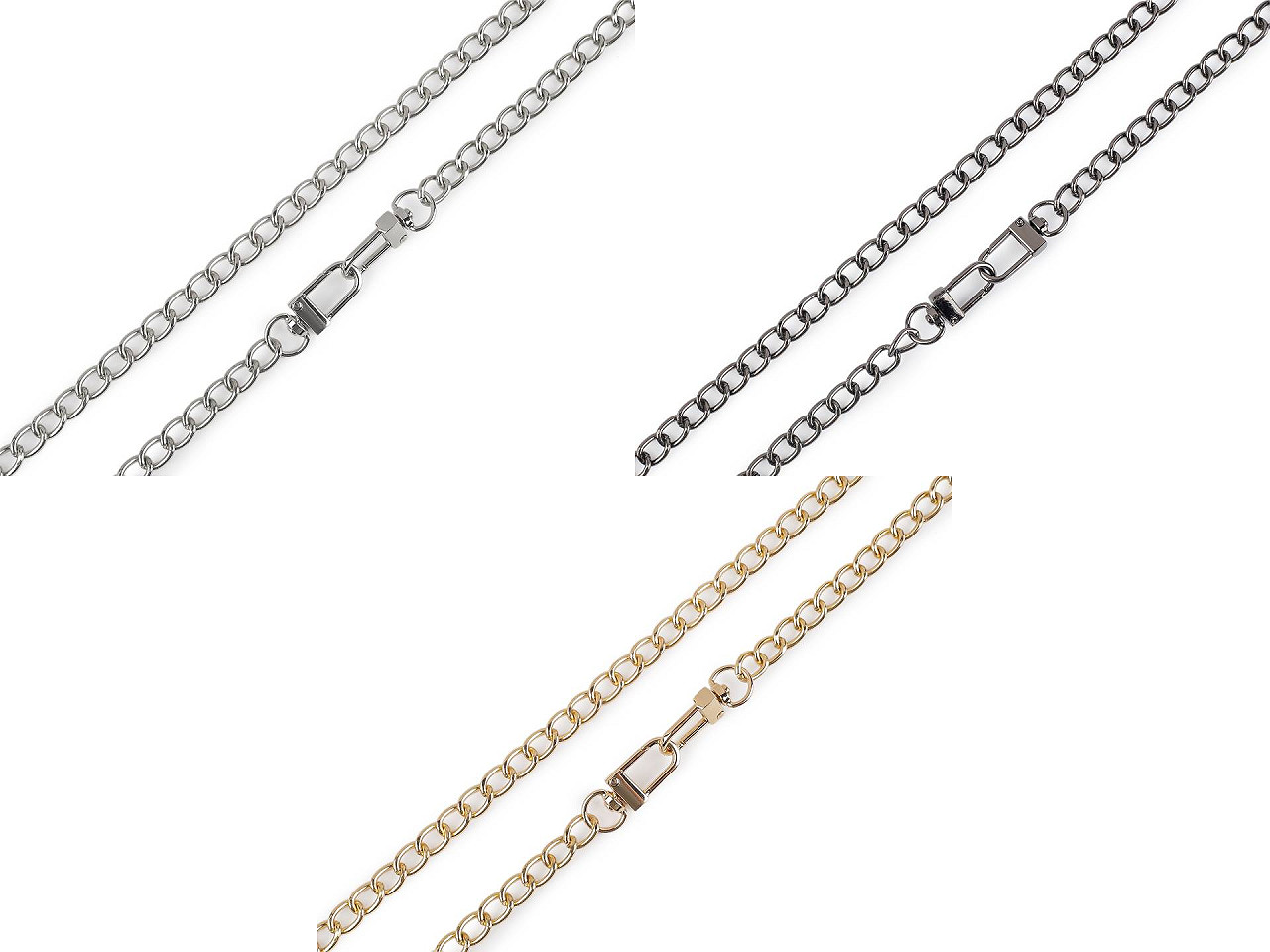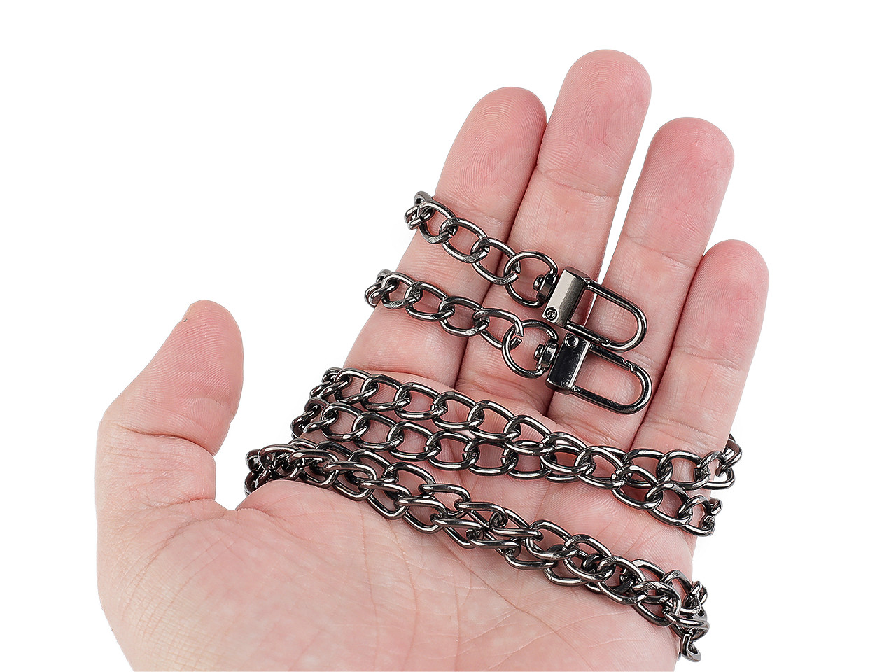 Kovovú retiazku s karabínkami využijete na kabelky a listové kabelky. Karabínky umožňujú jej rýchle a jednoduché pripevnenie.