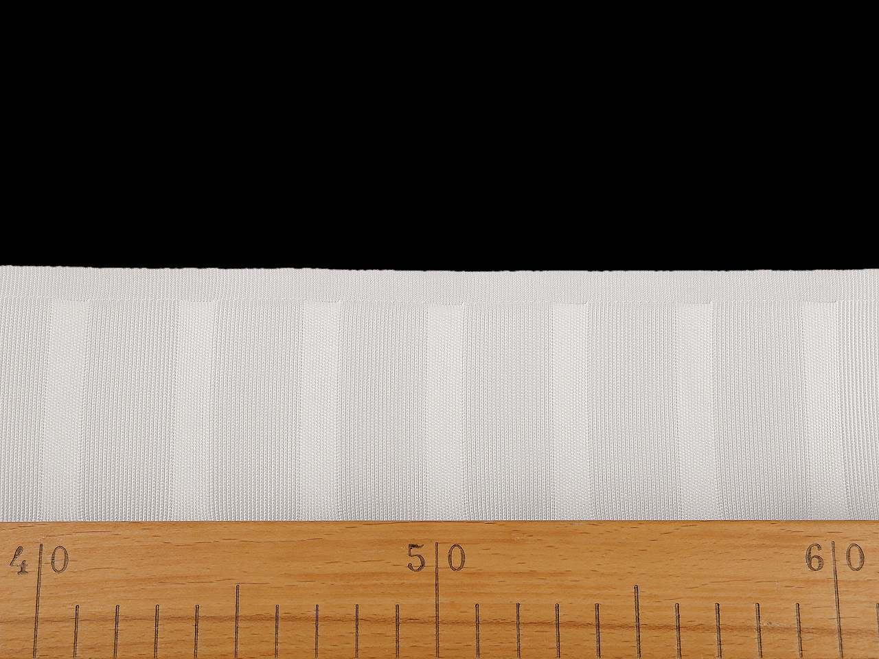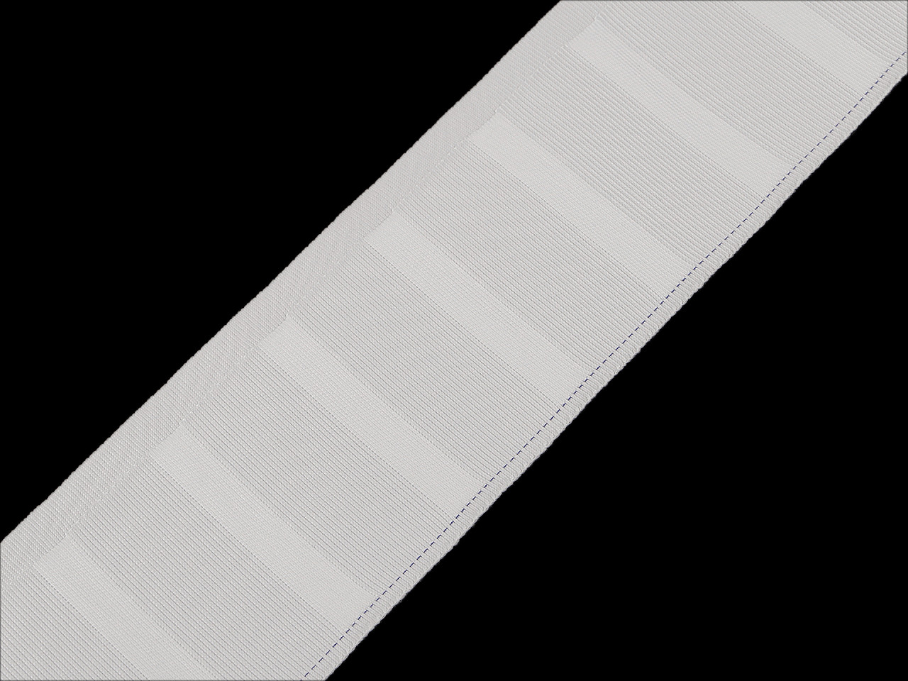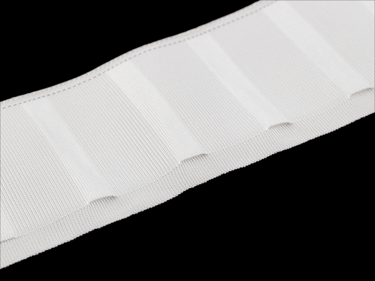 Riasiacu stuhu využijete na závesy a celkovo ťažšie materiály. Je pevná s pravidelnými pútkami na háčiky . Vytvára pravidelné a esteticky príjemné riasenie. Rozostupy medzi pútkami sú 25 mm. Na 1 m stuhy je 29 pútok.