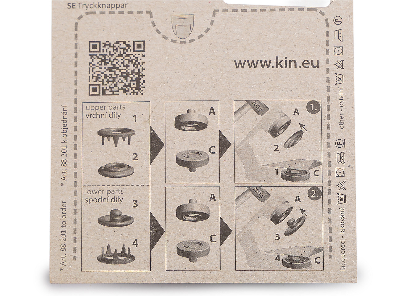Gombíky sa používajú ku spojovaniu jemných a poddajných druhov látok - froté, úplet, košeľovina a iné. Nytovanie sa vykonáva mini lisom, který je súčasťou balenia.