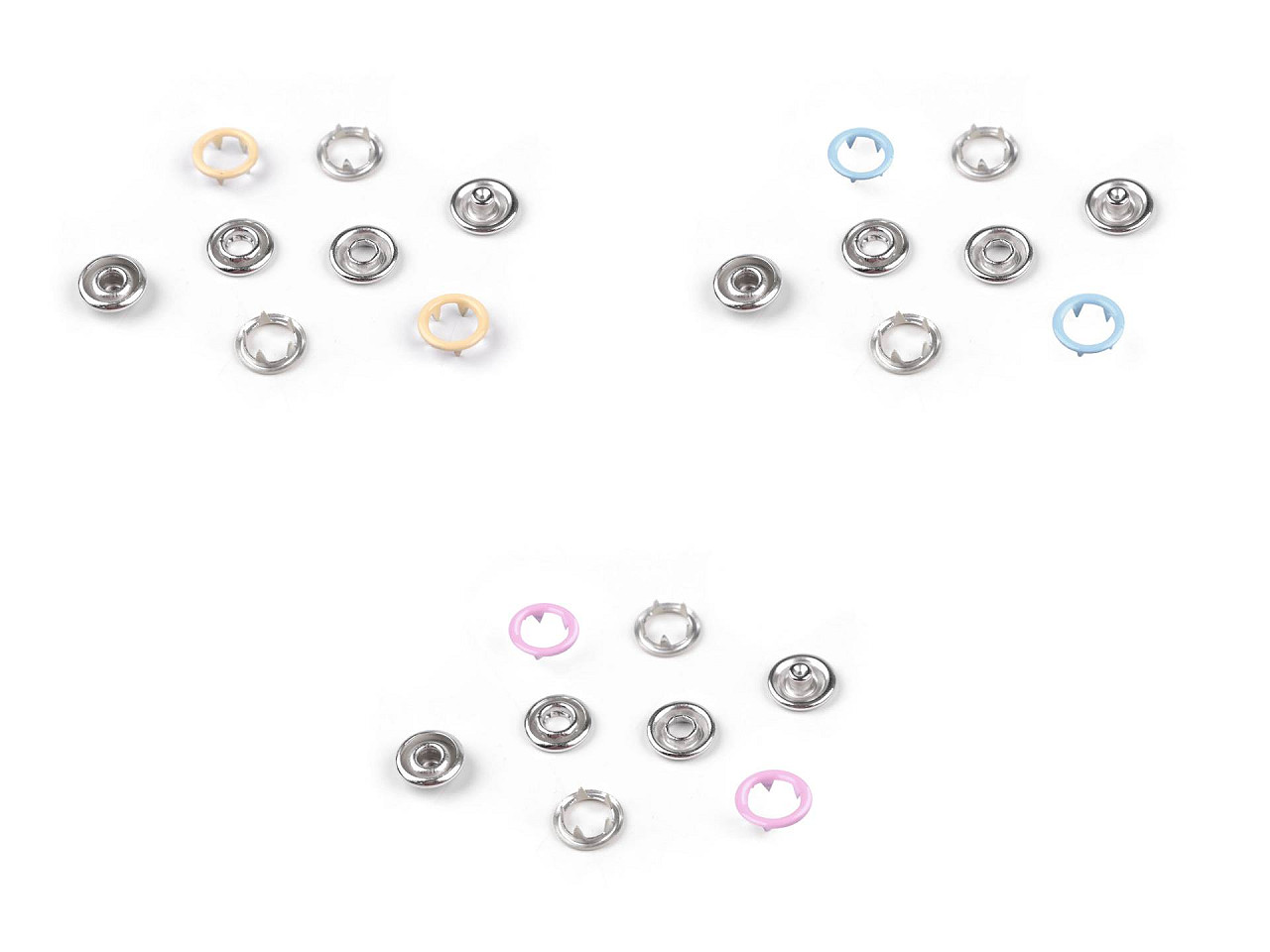 Gombíky sa používajú na spájanie jemných a poddajných druhov látok - froté, úplet, košeľovina a i. Na nitovanie budete potrebovať lis a piston, ktorý nájdete pod kódom 630380. Alebo môžete použiť ručné kliešte 900287. Sada sa skladá zo 4 dielov.