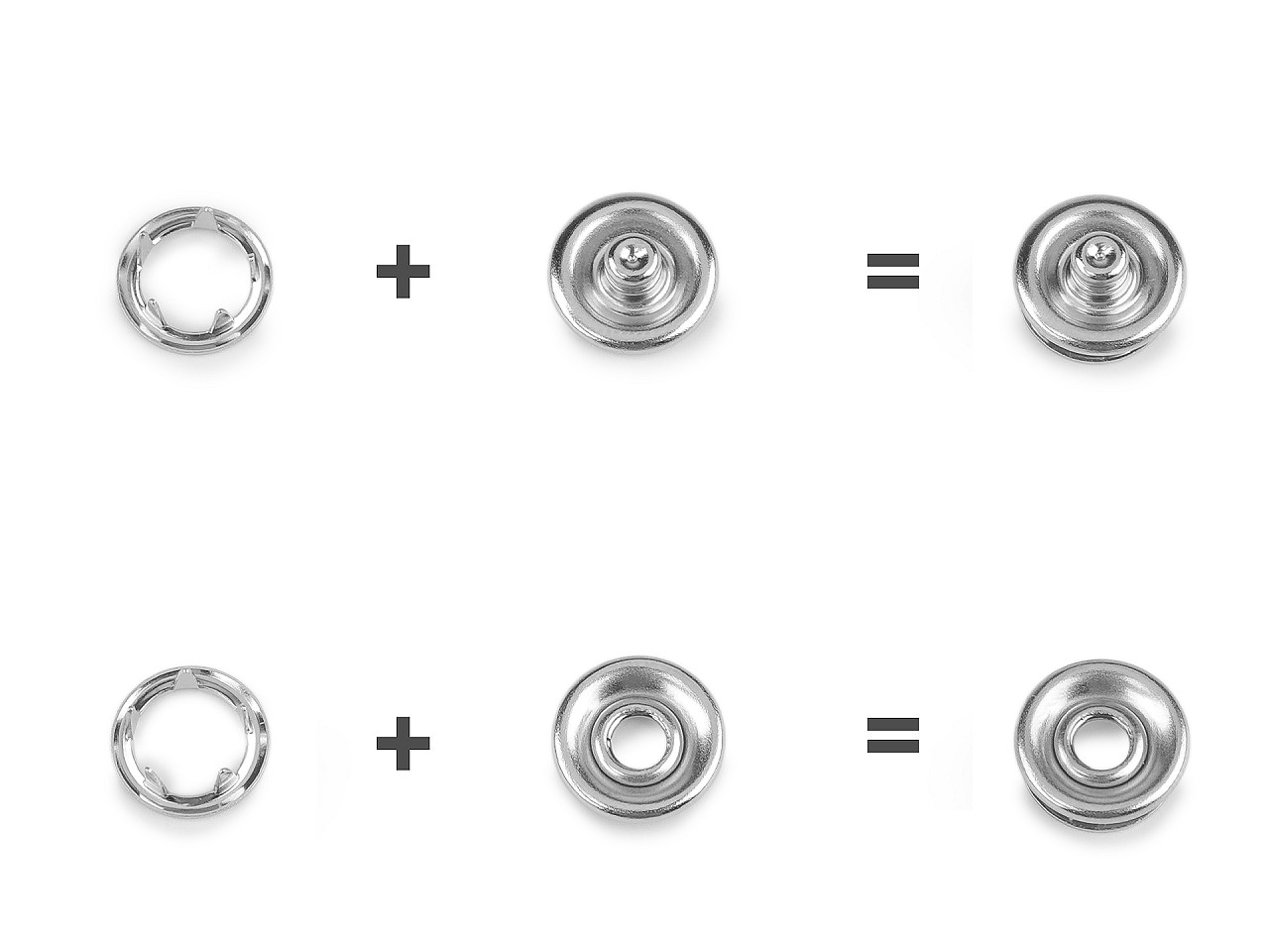 Gombíky Roland Baby sa používajú na spájanie hrubších druhov látok. Na nitovanie budete potrebovať lis a piston, ktorý nájdete pod kódom 630380. Môžete použiť aj kliešte . Sada sa skladá zo 4 dielov.