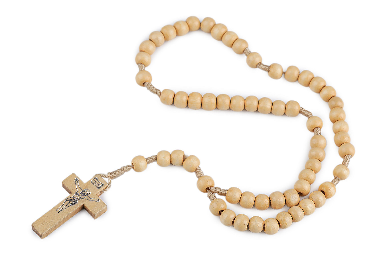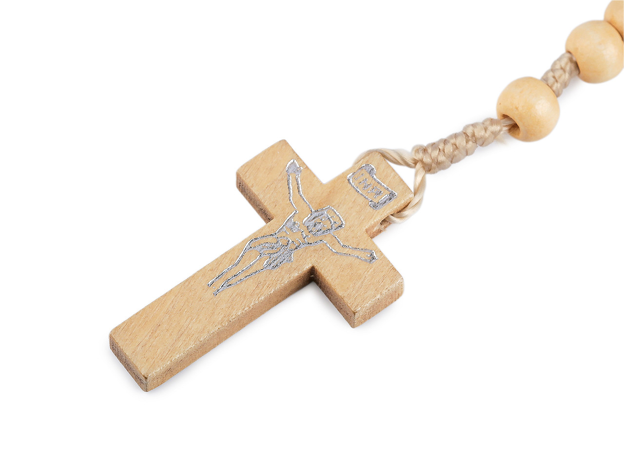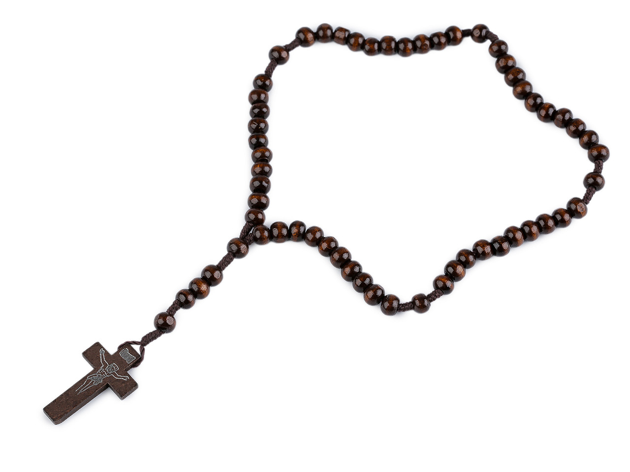 Ruženec z drevených okrúhlych korálikov vás poteší predovšetkým svojim príjemným prírodným dizajnom . Hornú časť má rozdelenú na 5 skupín po desiatich korálkoch. Dole je zakončený dreveným krížikom, ktorý má z jednej strany striebornú potlač. Jednotlivé koráliky spájajú drhané šnúrky. Ruženec vyniká svojou ľahkou hmotnosťou. Je ideálny pre osobné modlitby a meditácie, poskytuje pokoj a sústredenie na duchovnej ceste. Môžete ho používať počas tradičných modlitieb alebo ako symbol viery, ktorý môžete mať stále pri sebe. Je vhodný ako na každodenné použitie, tak aj ako dekoratívny prvok vo vašom interiéri. Nejedná sa o náhrdelník.