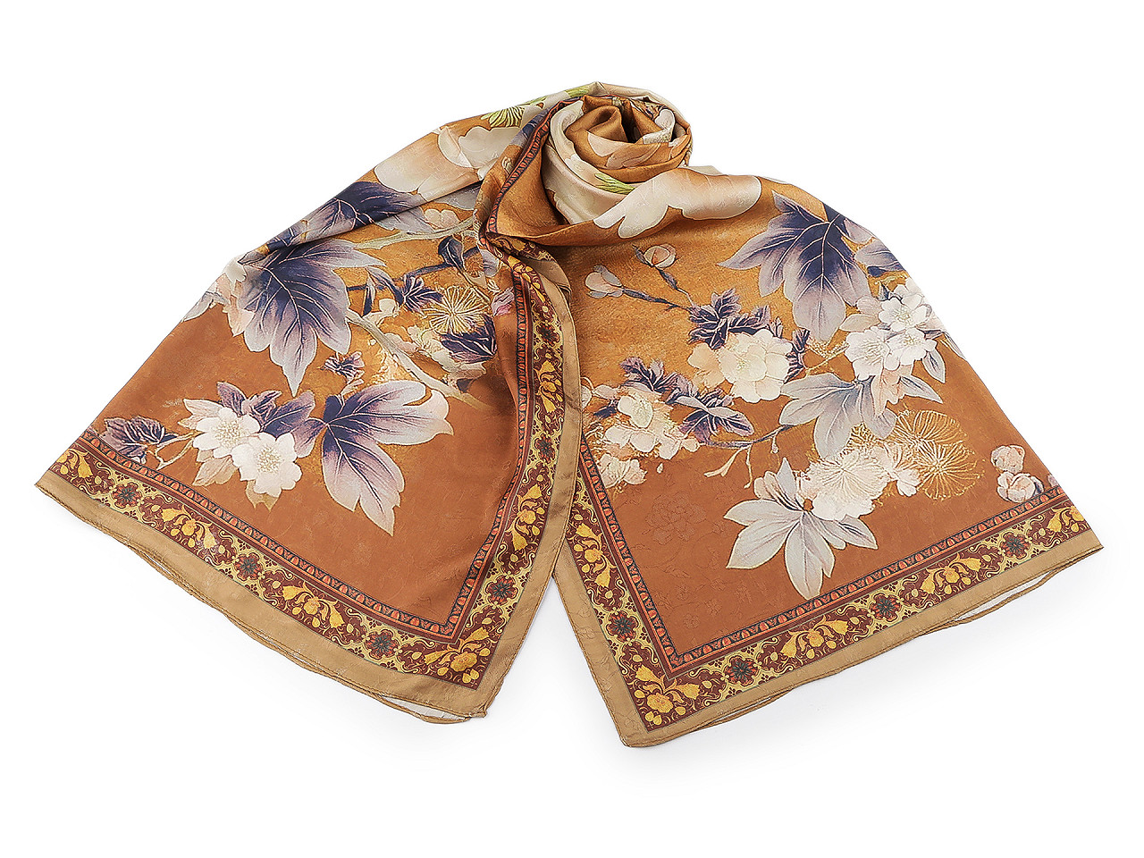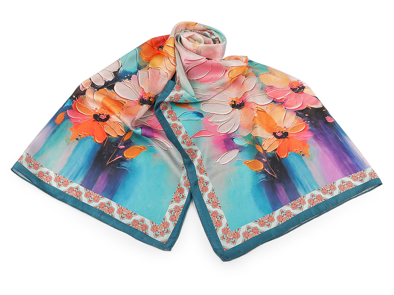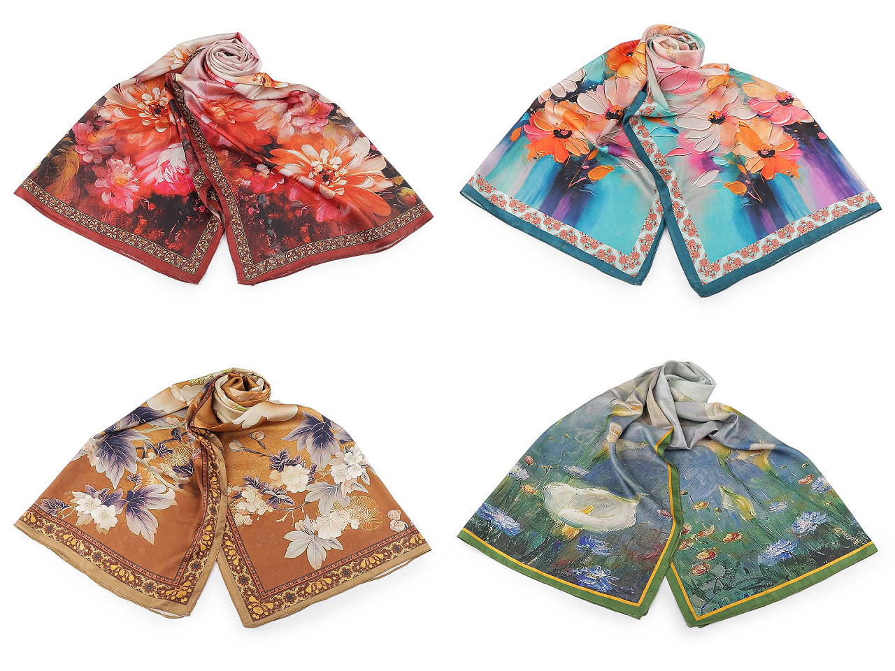Elegantná saténová šatka s kvetmi predstavuje luxusný doplnok, ktorý okamžite povýši akýkoľvek outfit. Je ľahučká a mäkká , jemné lesklé prevedenie a nádherný kvetinový vzor vytvárajú dojem exkluzivity. Využijete ju do spoločnosti aj na všedné nosenie ku kabátu, saku, blúzke, svetríku, šatám a pod. Bude skvelým darčekom pre každú ženu, ktorá si potrpí na štýl a kvalitu.