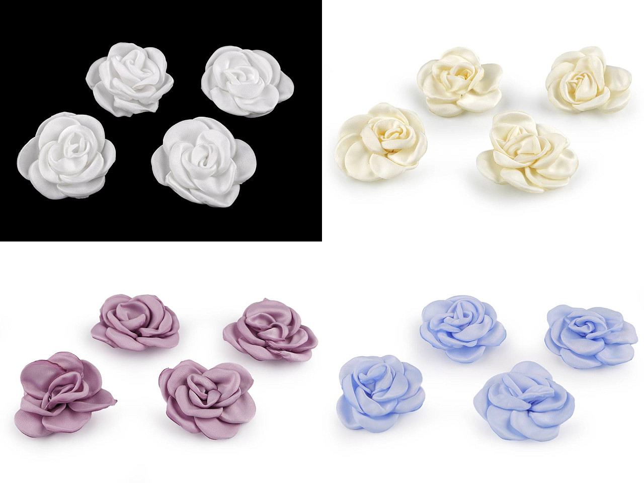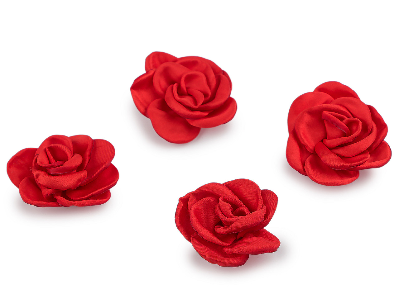 Textilné saténové kvety sú precízne spracované. Majú jemný saténový lesk. V spodnej časti majú filcové koliesko, vďaka ktorému ich môžete pohodlne kamkoľvek upevniť. Môžete ich našiť či nalepiť ako ozdobu na šaty, blúzky a pod. Použitie: Kvet môžete našiť ako ozdobu na spoločenské šaty, blúzky, tričká alebo svetre. Je vhodný aj na zdobenie klobúkov, čiapok a čeleniek do vlasov. Môžete ho tiež pomocou lepidla prilepiť na brošňový mostík a vytvoriť zaujímavý šperk.
