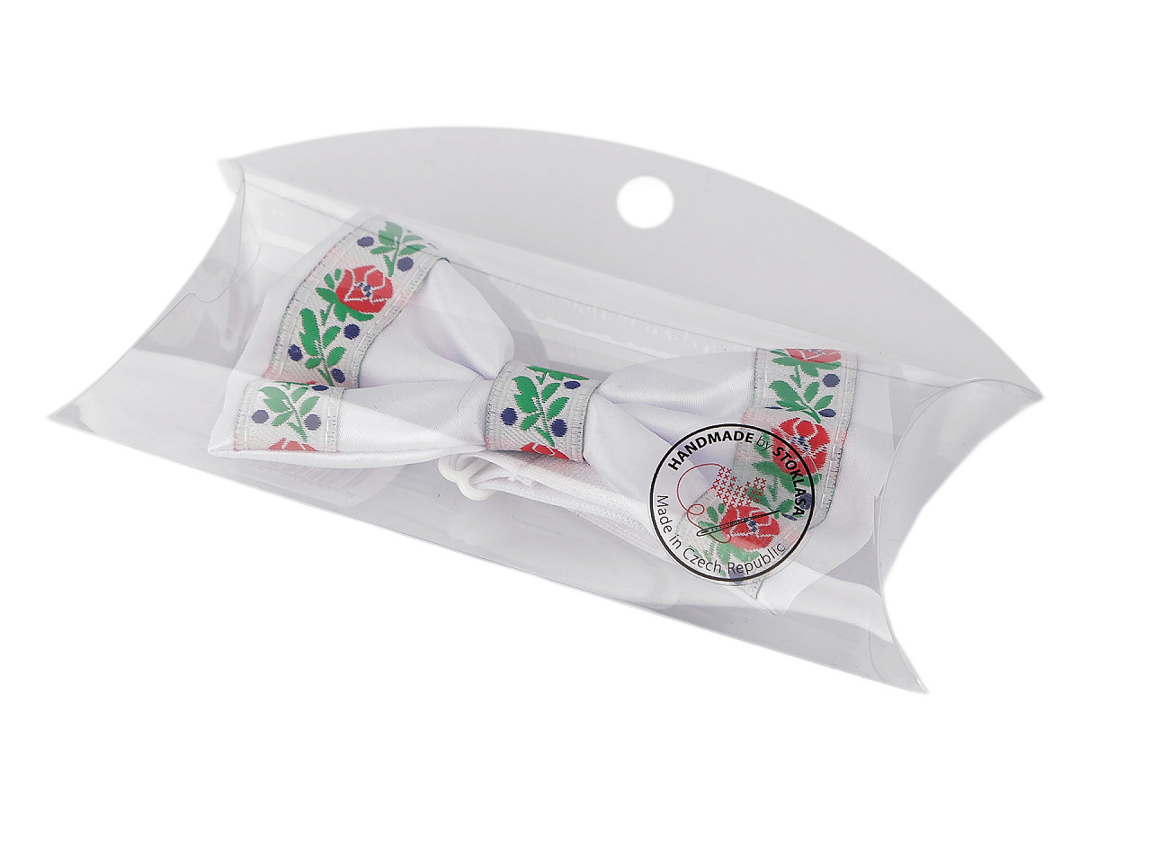 Saténový motýlik vo folklórnom štýle je vhodným doplnkom k akémukoľvek obleku - dodá mu osobitý šarm. Využijete ho na tematické plesy, tanečné kurzy, svadby, návštevy vínnych pivníc, vernisáží a pod. Najdlhšia dĺžka motýlika okolo krku je 45 cm. Táto dĺžka sa dá skrátiť na potrebnú veľkosť, aby motýlik presne sedel. Zapínanie je plastové.