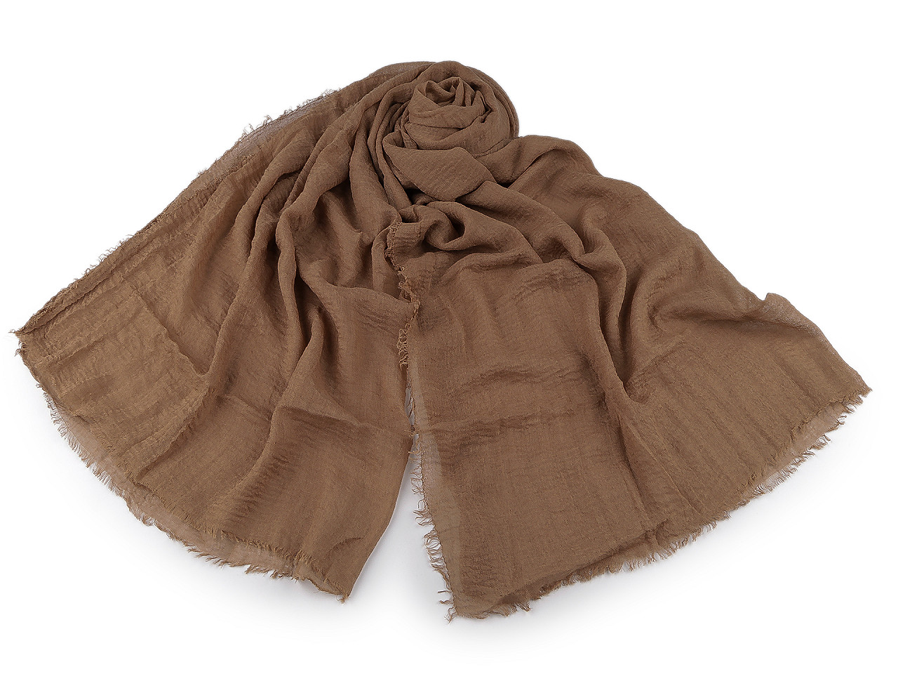 Jemná jednofarebná šatka je ľahučká a vzdušná. Do vášho šatníka prinesie praktický a moderný doplnok, ktorý sa skvele hodí na rôzne príležitosti. Jej univerzálny dizajn umožňuje jednoduché kombinovanie s rôznymi štýlmi oblečenia. Všetky strany šatky majú jemné strapce. Šatky môžu mať zlé štítky, skutočné zloženie je 100% polyester.