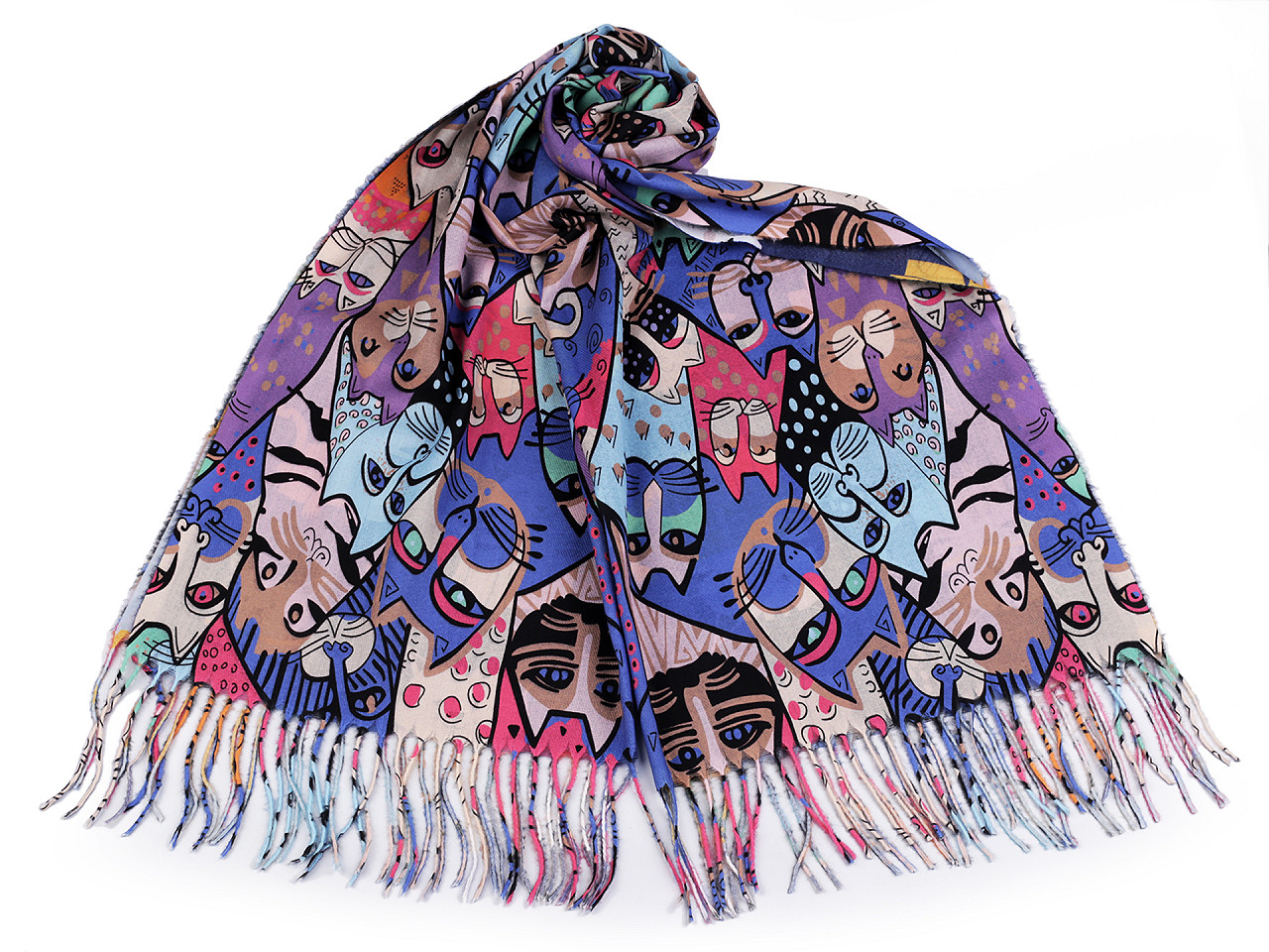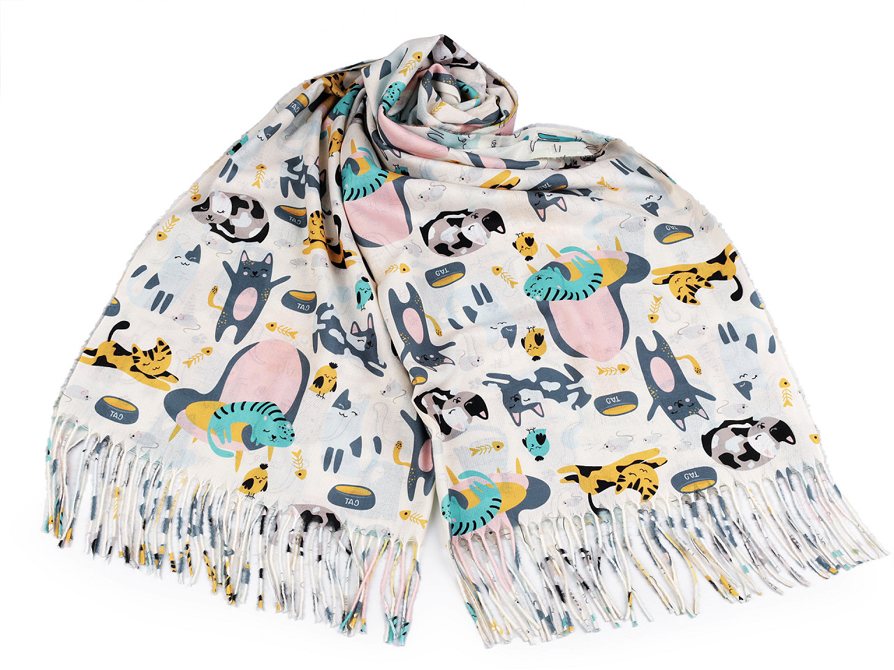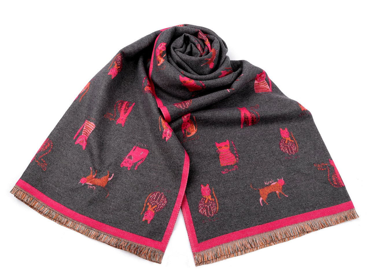 Veľký šál typu kašmír je vyrobený z hrejivého materiálu , ktorý je príjemne hebký na dotyk . Je ozdobený obrázkami rôznych mačiek . Krásne vás zahreje v chladnom a sychravom počasí. Na koncoch je zakončený krátkymi strapcami . Upozorňujeme zákazníkov, že zloženie na štítkoch sa môže líšiť, materiál je polyester a viskóza . Ospravedlňujeme sa za toto nedopatrenie a ďakujeme za pochopenie.