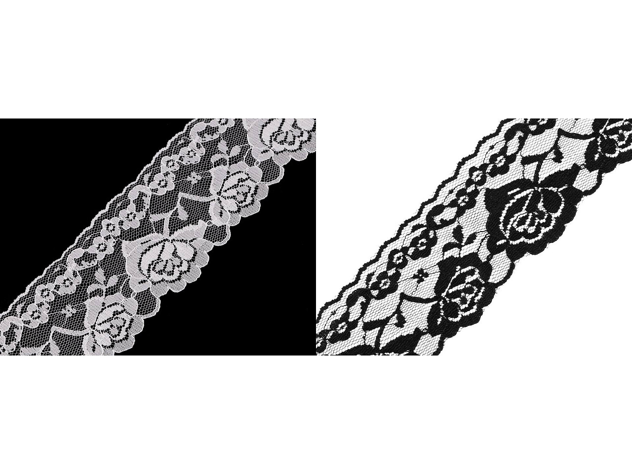 Silónová čipka je vhodná na ozdobenie prestierania, obrusov, dekoračných vankúšov i odevov a doplnkov. Varianta č. 1 je tuhšia. Varianta č. 2 je mäkká - odporúčame na spodnú bielizeň.