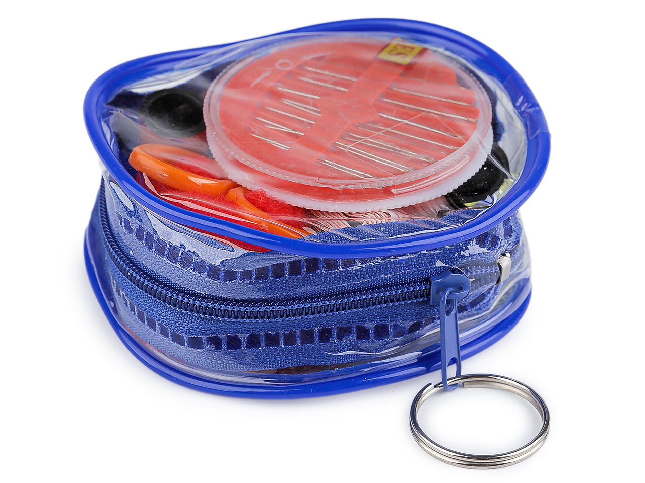 Veľmi praktické šitíčko v priehľadnej taštičke s priemerom 7,5 cm so zipsovým zapínaním. Obsahuje 8 cievok nití rôznych farieb, sadu ručných ihiel, ihelníček, meter, náprstok a nožnice.