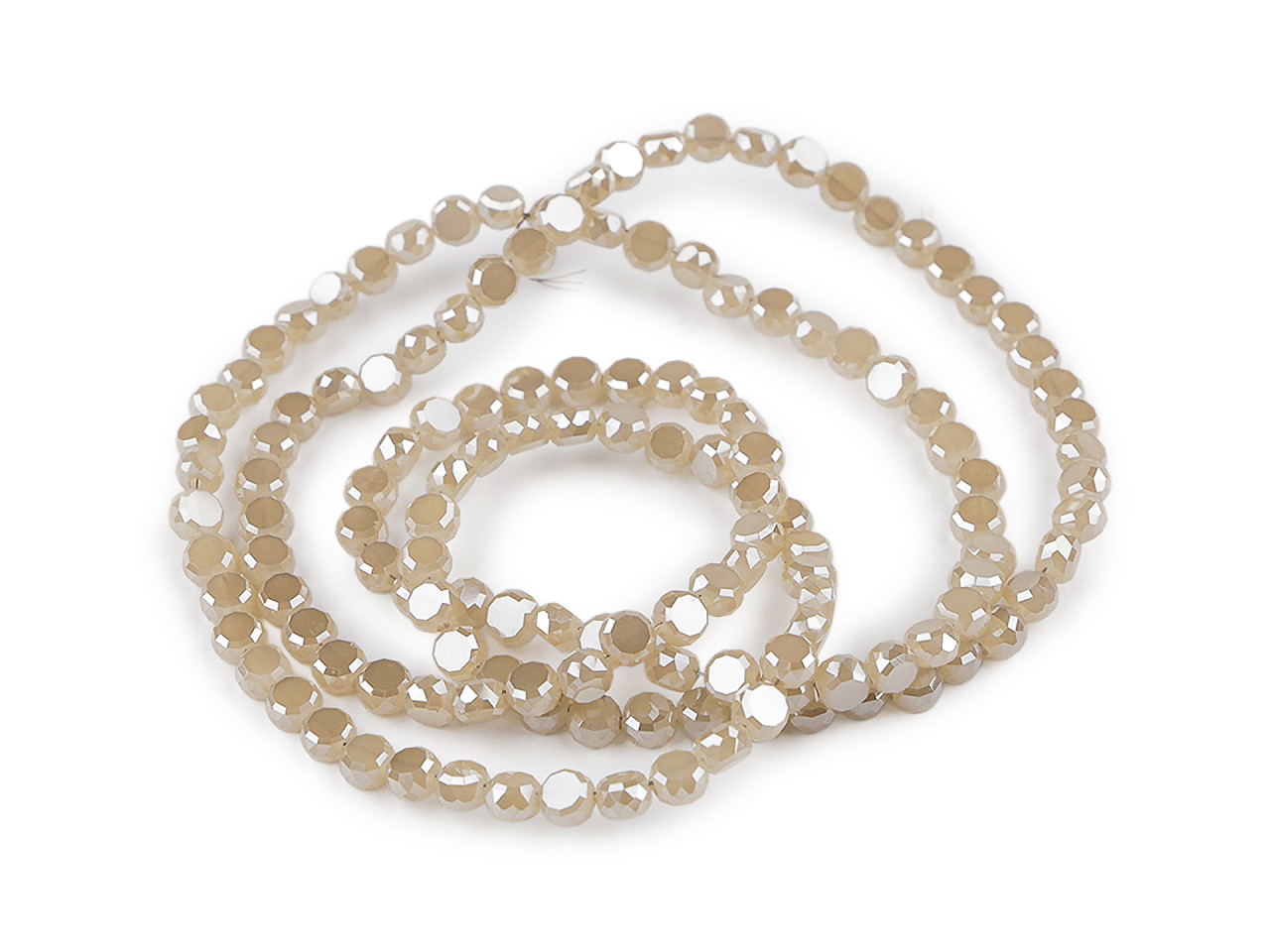 Sklenené brúsené korálky sa vyznačujú precíznym brúsením, ktoré im dodáva jedinečný lesk a vzhľad. Sú okrúhle, ale ploché , z oboch strán majú krásnu okrúhlu plôšku. Vynikajú predovšetkým svojim ligotom. Vďaka svojej jednotnej veľkosti a tvaru sú ideálne na precíznu prácu pri tvorbe šperkov. Brúsené korálky využijete na ketlovanie, do šitých šperkov, na drôtovanie, pamäťové náramky a pod. Sú tiež vhodné na použitie v rôznych hobby projektoch, kde môžu poslúžiť ako detailná ozdoba. 1 vrecko obsahuje cca 140 ks korálikov navlečených na jemnom drôtiku. Návlek je dlhý cca 49 cm. Hmotnosť vrecka aj s korálkami je 10,8 g.
