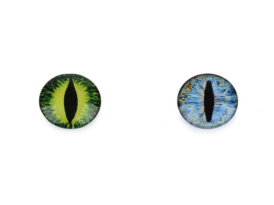 Okrúhle sklenené oči s motívom dračieho oka majú kvalitné spracovanie. Vďaka tvaru vypuklej šošovky obrázok oka krásne vynikne . Využijete ich na tvorbu rôznych postavičiek a zvieratiek. Na ich prilepenie je vhodné použiť lepidlo na lepenie kamienkov. S obľubou sa používajú aj na výrobu bižutérie, ako kabošony sú vhodné na nalepenie do kovového lôžka alebo na obšitie korálkami a rokajlom. Veľmi pôsobivé sú v drôtovaných šperkoch.