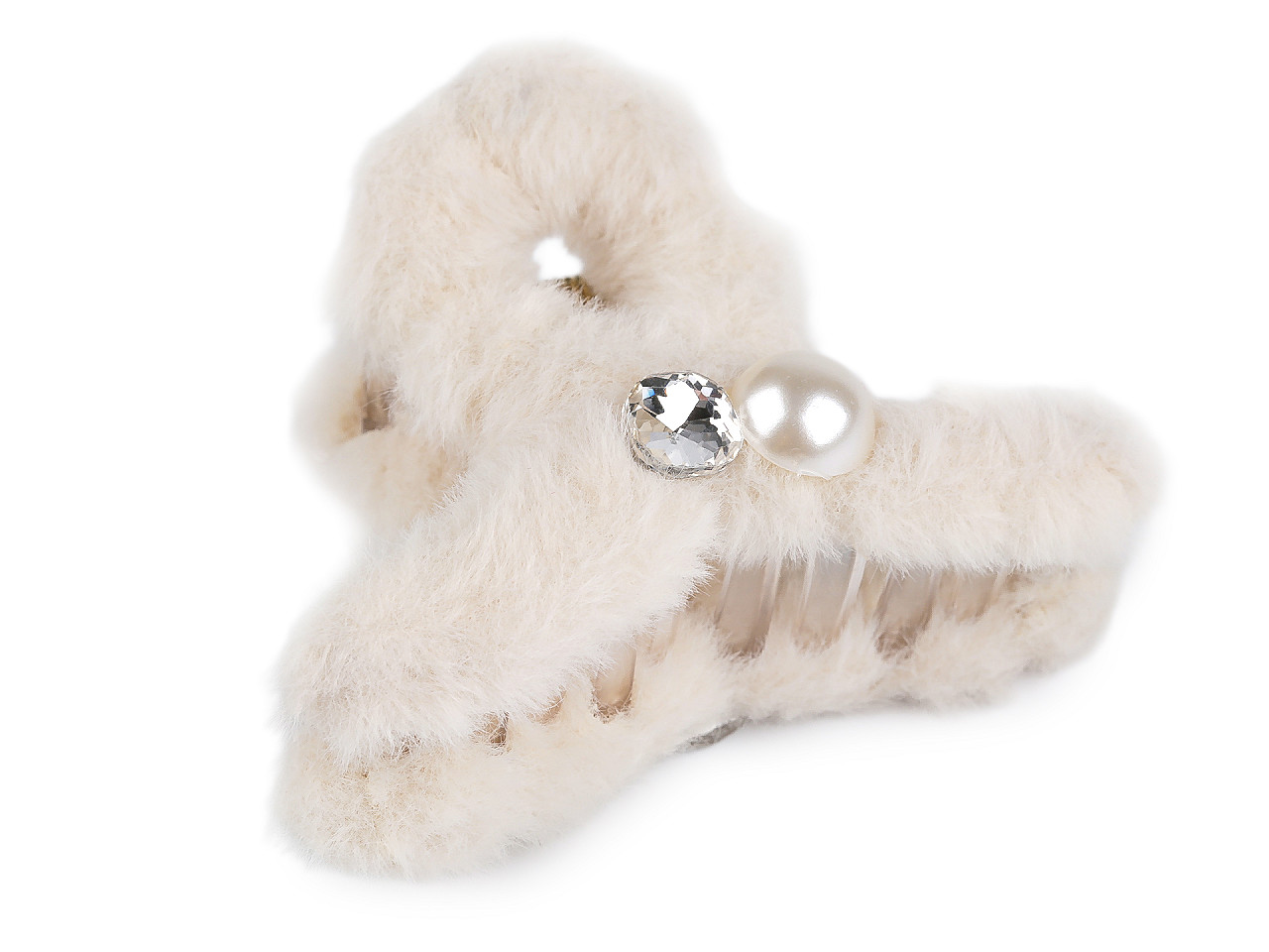 Štipec do vlasov s kožušinou vytvorí pútavý účes počas chvíľky. Navyše je z oboch strán ozdobený perlou a brúseným kameňom s oslnivým leskom. Drží presne na mieste vďaka svojmu silnému stlačeniu a dlhým zubom . Je vhodný na rôzne účesy a dĺžky vlasov. Ocenia ho ženy a dievčatá, ktoré chcú zostať štýlové nielen počas zimy. Štipec dodá vášmu outfitu jedinečný nádych luxusu a elegancie.