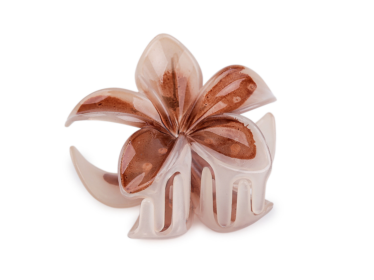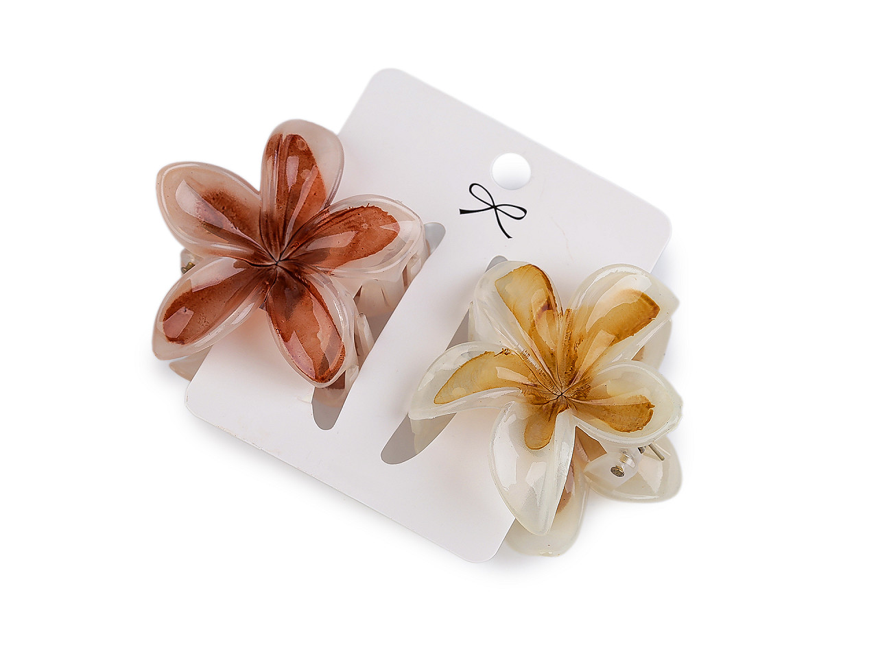 Štipec do vlasov v tvare kvetu je jarným aj letným doplnkom, ktorý dodá vášmu účesu romantický vzhľad. Je vyrobený z transparentného prefarbeného plastu , či už sa chystáte na dovolenku, na stretnutie s priateľmi alebo na romantickú večeru, tento doplnok podčiarkne vašu ženskosť. Vytvorí pútavý účes počas chvíľky. Drží presne na mieste vďaka svojmu silnému stlačeniu a dlhým zubom.