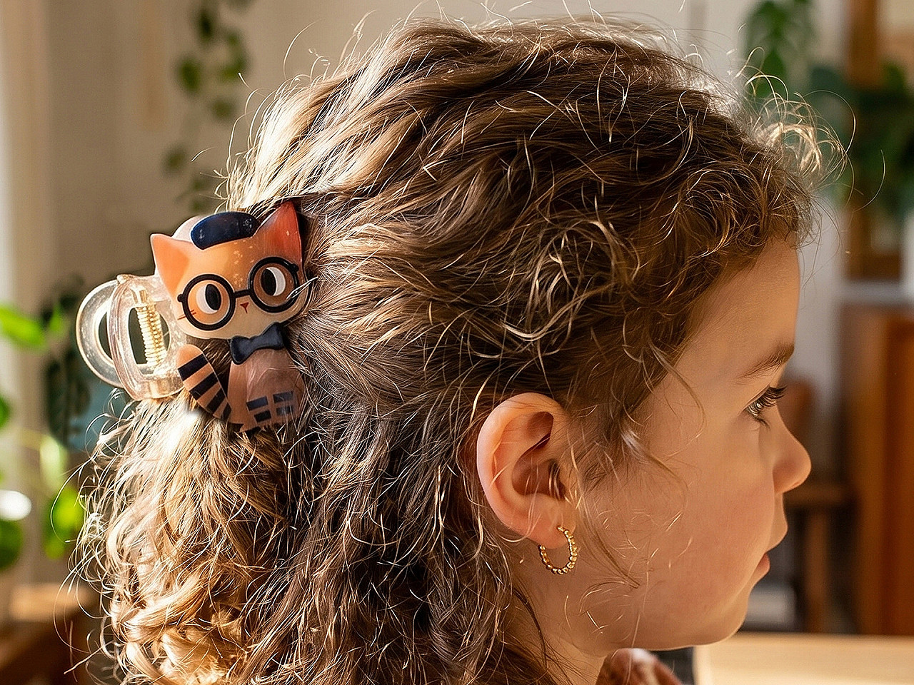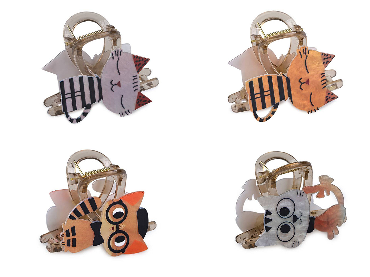 Štipec v tvare mačky dodá vášmu účesu zábavný hravý štýl. Je skvelým darčekom pre každú malú slečnu a pre milovníčky mačacích maznáčikov. Má potlač s jemným perleťovým nádychom . Dá sa použiť na jednoduché zopnutie vlasov na doma, v práci či na voľný čas, ale aj na vytvorenie elegantnejšieho účesu na večierok. Pútavý účes vytvorí behom chvíľky. Štipec vďaka svojmu silnému stlačeniu a dlhým zubom presne drží na mieste.