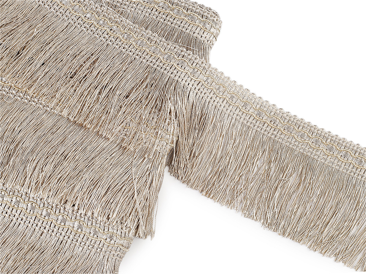 Elegantný prámik so strapcami využijete na ozdobenie bytových doplnkov ako sú dekoračné vankúše, závesy, kreslá a pod. Strapce majú jemný hodvábny lesk.