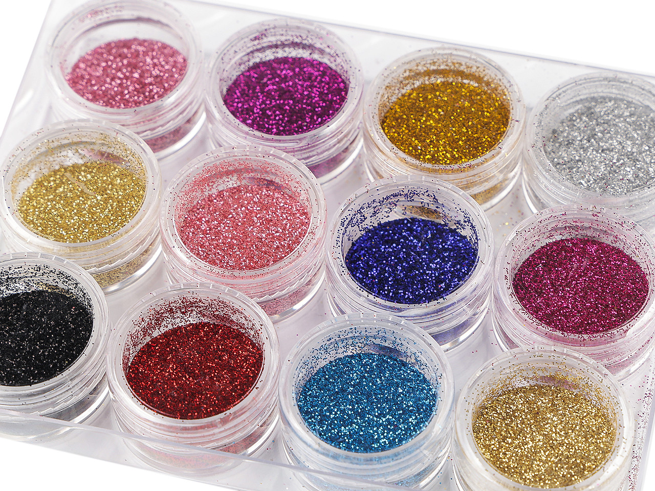 Sada 12 farieb sypkých glitrov v skrutkovacích dózach sa hodí na ozdobenie prakticky čohokoľvek. V odevnom priemysle sa používajú ako dekorácia na textil. Pokiaľ pridáte glitre do farieb či lepidla, môžete nimi na odeve vytvoriť trblietavý efekt. Svoje využitie majú aj v technike scrapbooking. Hodia sa na výrobu prianí či menoviek alebo na zdobenie vianočných ozdôb. Môžete sa s nimi stretnúť tiež pri karnevalových ozdobách, dokonca ich nájdete i na obuvi. Glitre sú balené v skrutkovacích dózach . Dóza obsahuje cca 2 g glitrov , má priemer 3 cm, je vysoká 1,7 cm. Balenie 12 ks dóz je v transparentnej plastovej krabičke s rozmermi 9 x 12 x 2 cm. Návod použitia na látku : Textilné lepidlo 010897 naneste v požadovanom množstve a tvare na látku a posypte práškovými glitrami. Odporúčame prežehliť cez látku. Najskôr vyskúšajte na malom kúsku látky.