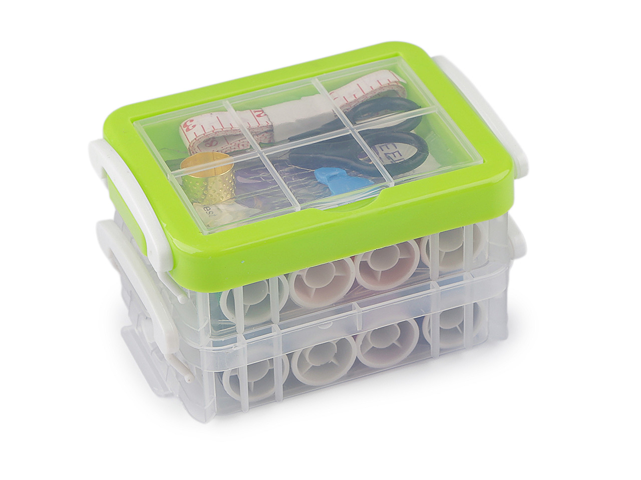 Súprava na šitie v praktickom plastovom boxe obsahuje všetky základné veci, ktoré potrebujete na šitie alebo opravenie vášho oblečenia. Box je dvojposchodový. Obsah sady: - farebné nite (16 ks) - sada ihiel (20 ks) - obojstranný krajčírsky meter - cm, inch (150 cm) - navliekač nití - kovový náprstok - malé nožnice