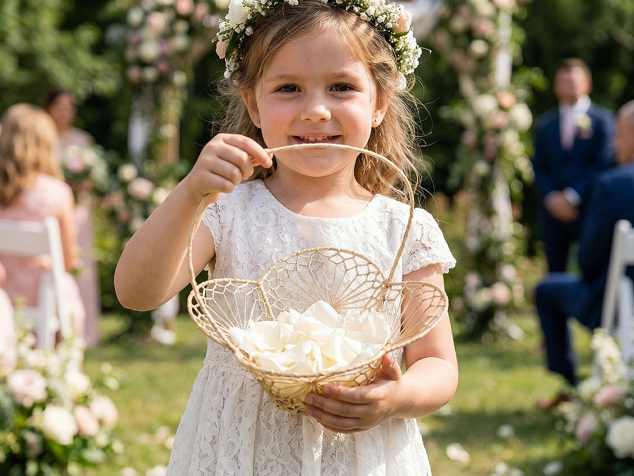 Svadobný košíček je pôsobivým doplnkom pre malé aj väčšie družičky, ktoré s jeho pomocou vytvoria nezabudnuteľnú atmosféru pri obrade. Jemné pletenie dodáva košíčku romantický vzhľad. Vnútri sa budú vynímať plátky ruží alebo kvetinový aranžmán.