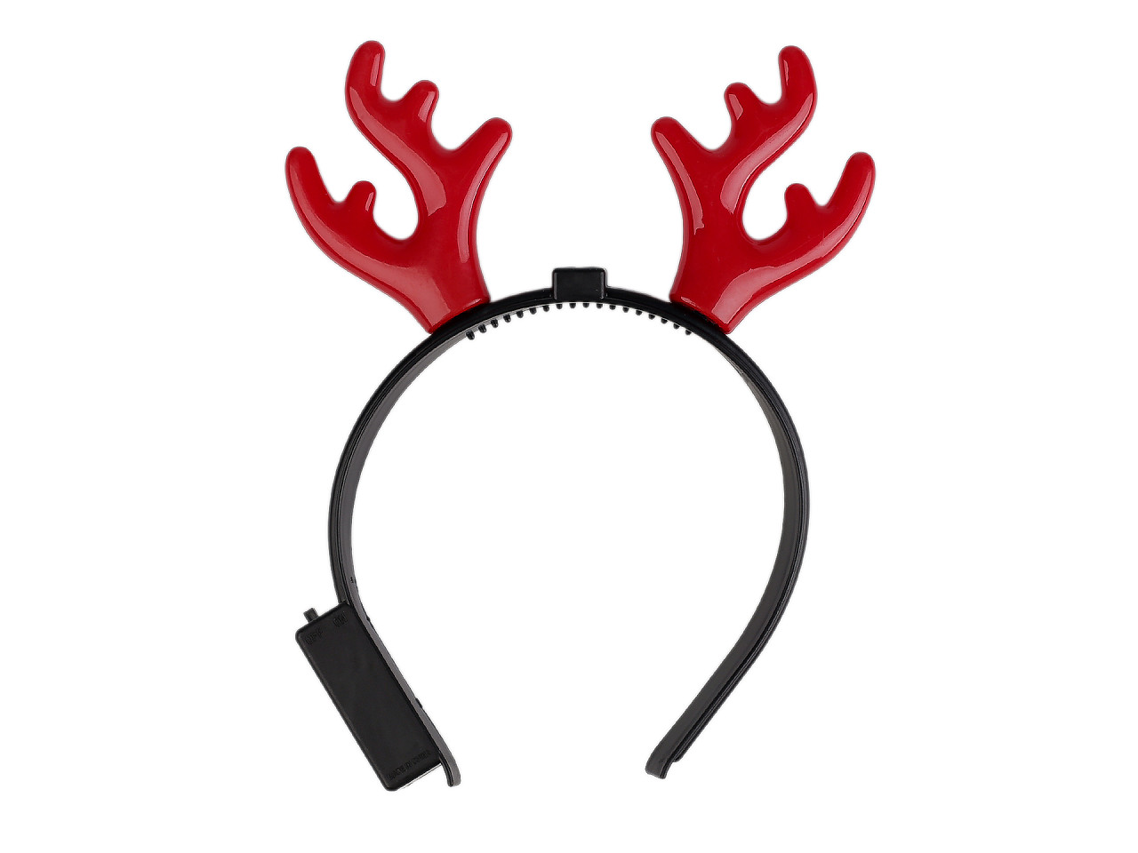 Čelenka s blikajúcimi sobími parôžkami je vhodná na vianočné párty, večierky, rodinné stretnutia alebo karnevaly. Parôžky sú umiestnené na čelenke, ktorá má zúbky, a vo vlasoch dobre drží. Batérie (3x LR44) sú súčasťou výrobku. Dĺžka parôžkov je cca 8 cm.