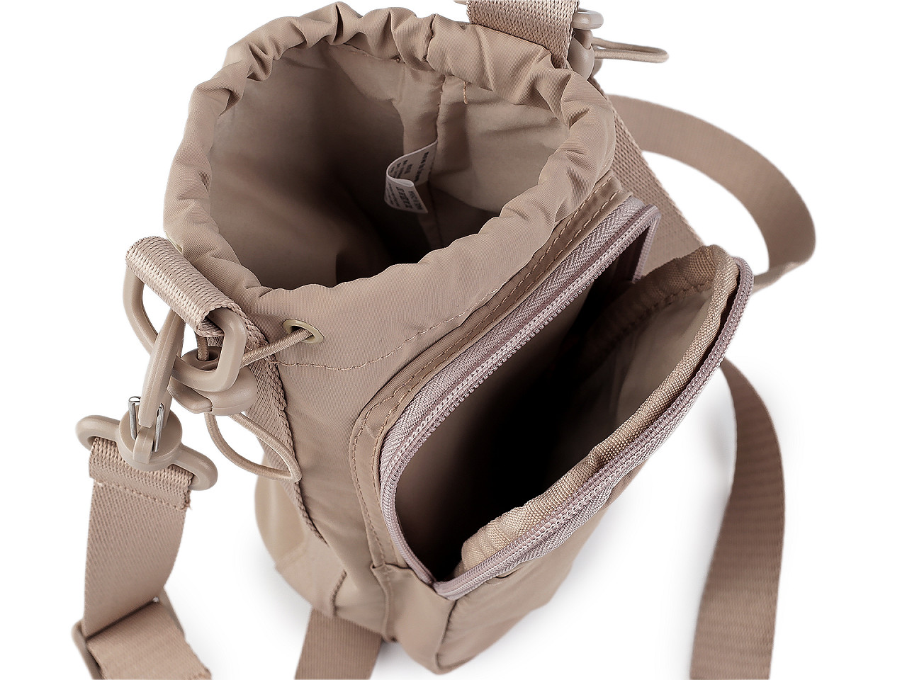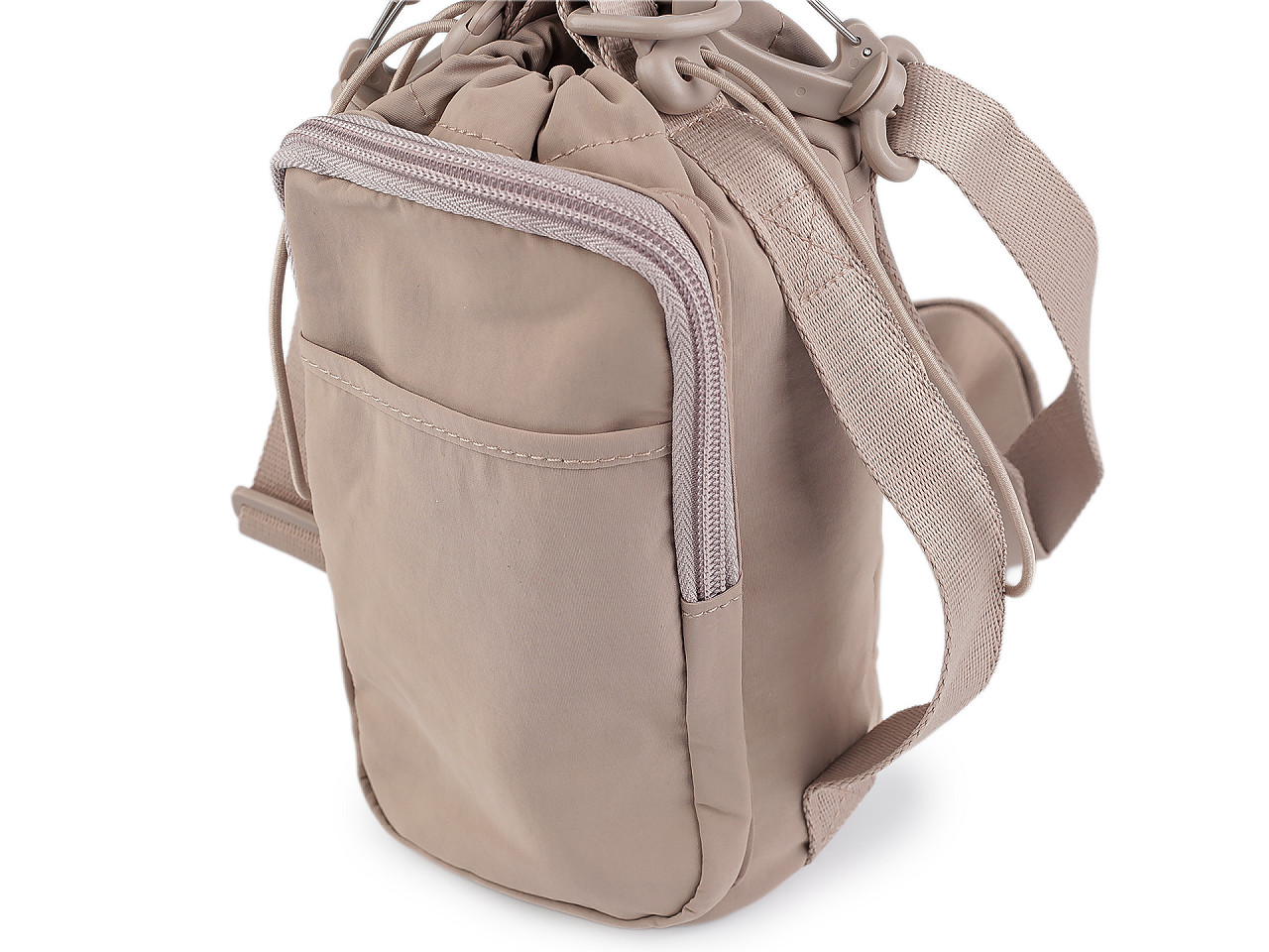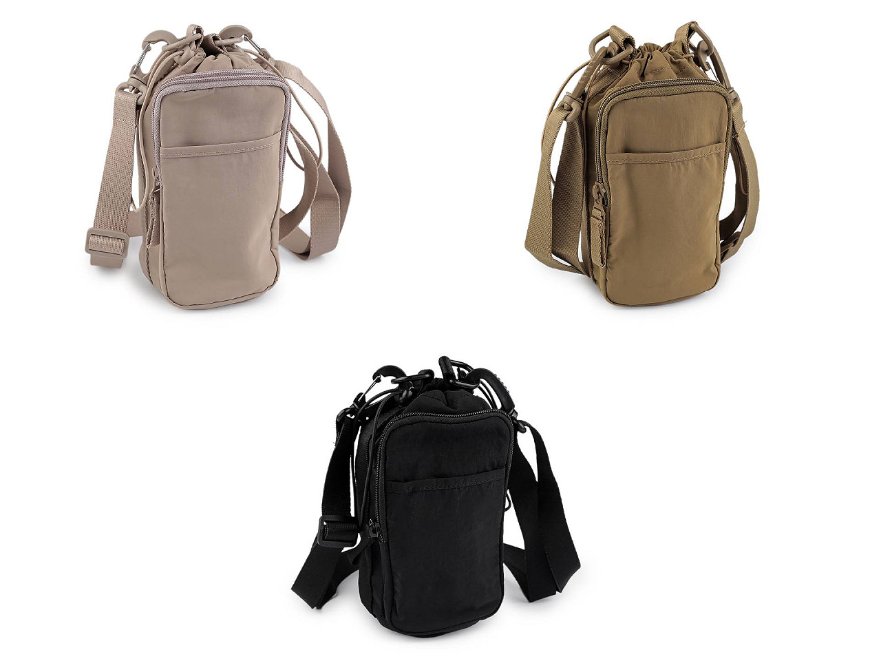 Textilná crossbody taška sa vďaka svojmu kompaktnému dizajnu ľahko zmestí do väčšej kabelky alebo batoha, čo z nej robí ideálneho spoločníka na cesty, pri prechádzkach mestom alebo pri rôznych aktivitách. Je veľmi praktická, do jej hlavného vrecka môžete uschovať fľašu s nápojom . Je skvelou voľbou pre každého, kto chce spojiť funkcionalitu s módnym vzhľadom. Na prednej strane disponuje vreckom na zips, na uschovanie mobilu, peňaženky a ďalších malých nevyhnutností. Dá sa nosiť krížom cez rameno alebo len tak v ruke za pútko umiestnené na boku tašky. Jej súčasťou je odopínací popruh na karabíny s plynulou reguláciou dĺžky. Hlavné vrecko sa uzatvára pomocou dvoch posuvných brzdičiek. Na prednej aj zadnej strane je malé ploché vrecko.
