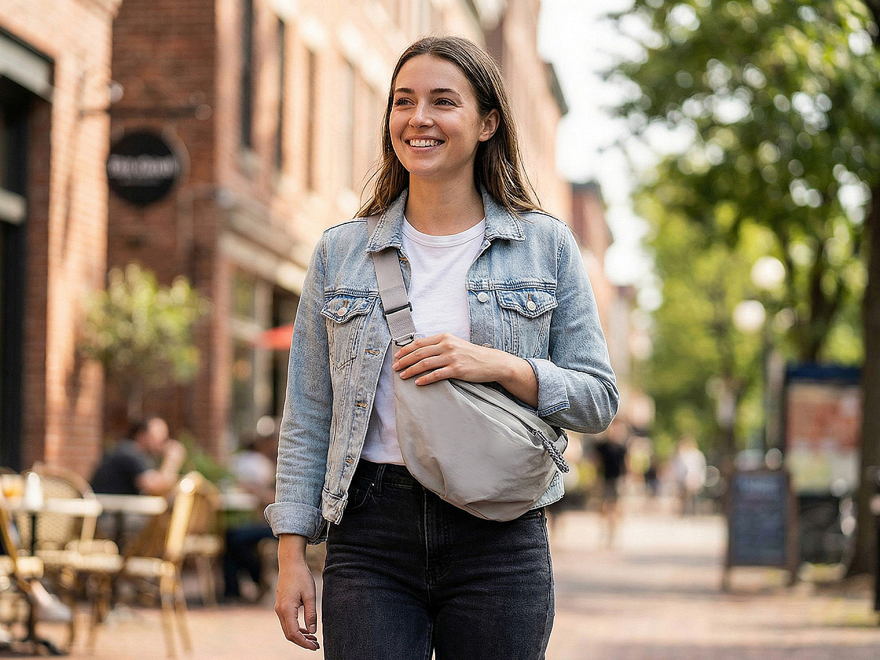 Textilná crossbody kabelka v tvare veľkej ľadvinky sa stane vašim obľúbeným módnym doplnkom. Ponúka dostatok priestoru pre všetky vaše veci. Jej univerzálny štýl ľahko zladíte s akýmkoľvek outfitom a dodáte svojmu vzhľadu moderný a sofistikovaný nádych. Dá sa nosiť krížom cez rameno , ale aj ako klasická ľadvinka okolo pása. Jej súčasťou je popruh s rozopínacou sponou a s plynulou reguláciou dĺžky. Hlavné vrecko sa uzatvára na zips, vo vnútri nájdete malé zipsové vrecko na drobnosti. Pomerne veľké vrecko na zips je aj na prednej strane kabelky, na zadnej strane je malé vrecko na zips.
