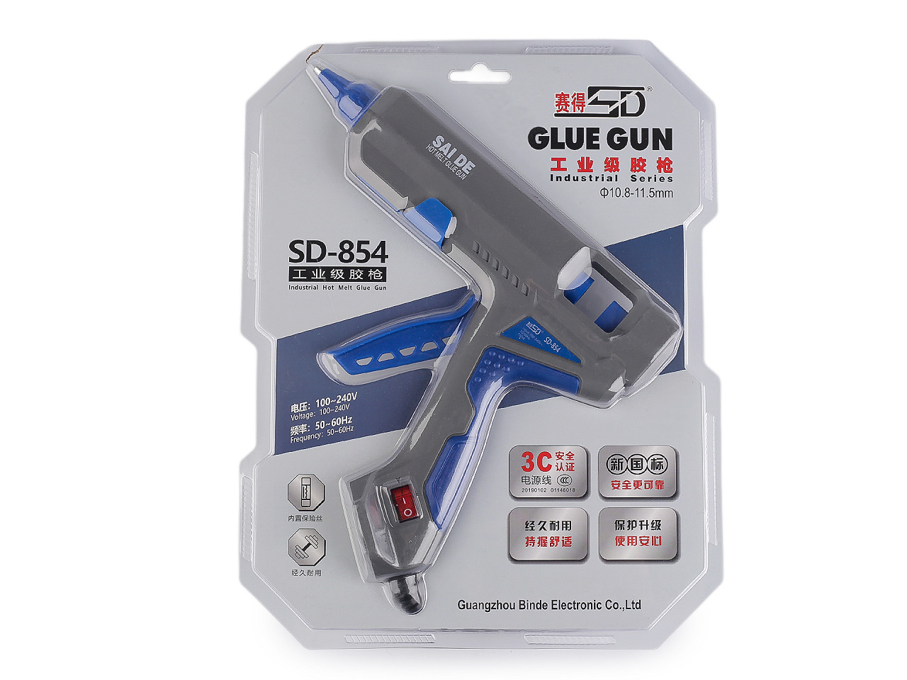 Tavná lepiaca pištoľ pomôže s lepením pri rôznych hobby technikách. Môžete do nej použiť lepidlo Ø11 mm . Na konci rukoväte má dvojpolohový prepínač, ktorým sa pištoľ zapne a vypne. Pištoľ sa zapája do elektriny. Pri práci s ňou zaobchádzajte opatrne, pretože jej tryska je horúca. Rozohriatu pištoľ odkladajte na stojan umiestnený v jej prednej časti. Lepte iba s dobre rozohriatou pištoľou, pokiaľ nie je lepidlo tekuté, môže pri tlačení na piest dôjsť k jej poškodeniu. Priemer trysky je 3,2 mm. Dĺžka kábla je 140 cm. Technické parametre: 100 – 240 V, 50/60 Hz, 150W.