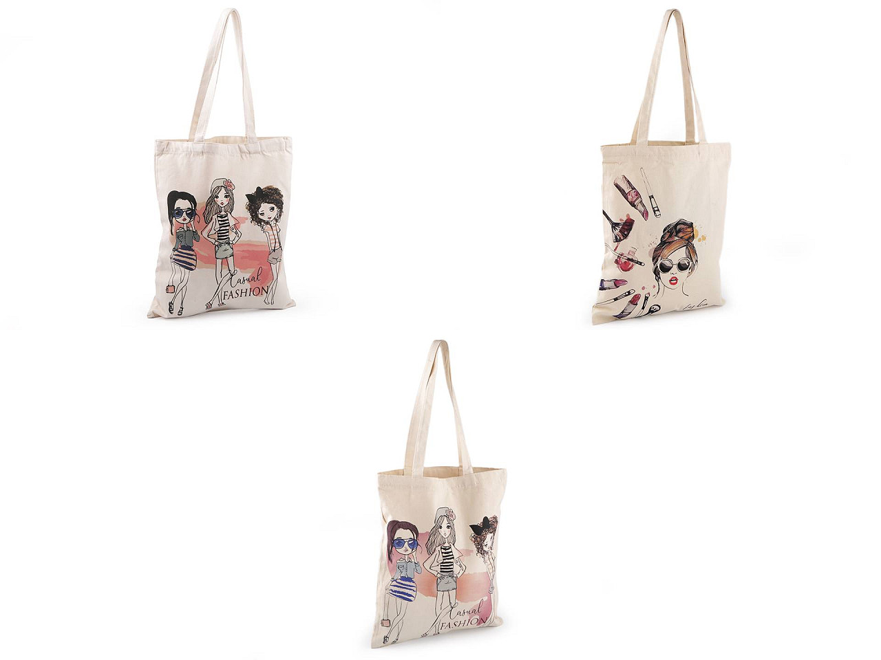 Textilnú bavlnenú tašku z pevného hrubého materiálu zdobia na prednej strane pútavé fashion motívy . Nemá podšívku, je vhodná na bežné nákupy. Dokonale nahradí igelitovú tašku, jej nosením chránite životné prostredie. Taška č.3 a 4 sa uzatvára na zips, vo vnútri má malé vrecko na drobnosti.