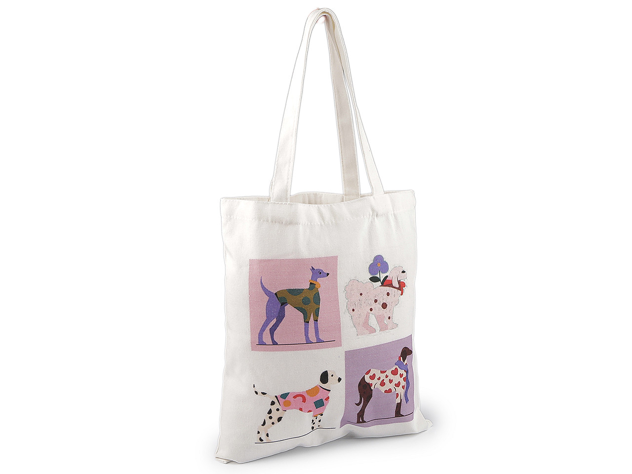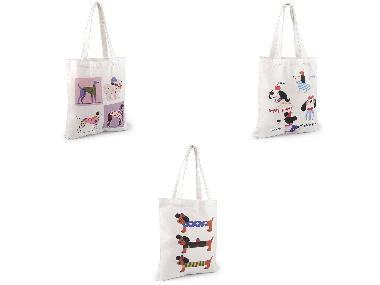 Textilná bavlnená taška je vyrobená z kvalitného, pevného materiálu . Z oboch strán ju zdobí veselá potlač psíkov , ktorá pridáva taške jedinečný vzhľad a určite poteší každého milovníka zvierat. Nemá podšívku, je vhodná na bežné nákupy. Vďaka svojej ľahkosti a skladnosti ju ľahko zložíte a budete mať vždy po ruke. Stane sa ideálnou voľbou pre tých, ktorí hľadajú ekologickú alternatívu k plastovým taškám.
