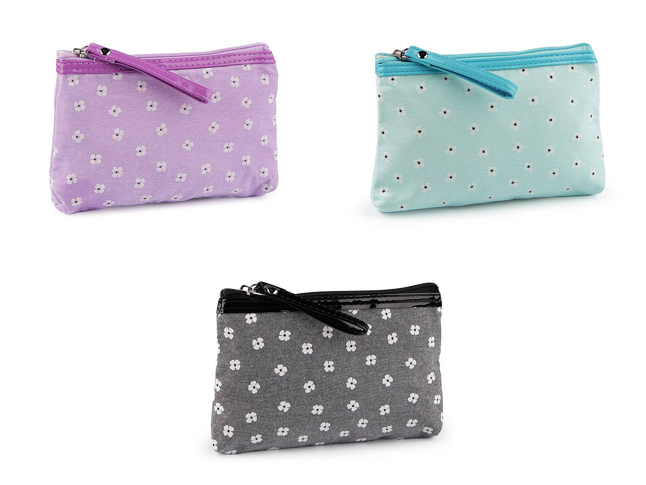 Textilné puzdro na kozmetiku a drobnosti je elegantným a praktickým doplnkom, ktorý nesmie chýbať vo vašej kabelke. Horný bavlnený poťah má potlač drobných kvetiniek je ideálny na doma aj na cestovanie. Je dostatočne pevné a priestranné , zmestí sa doň všetko potrebné napr. mobil, písacie potreby, okuliare a pod. Praktické pútko uľahčuje manipuláciu s puzdrom a jeho prenášanie. Zapína sa na zips, horný okraj je spevnený našitým lesklým polyuretánovým pruhom.