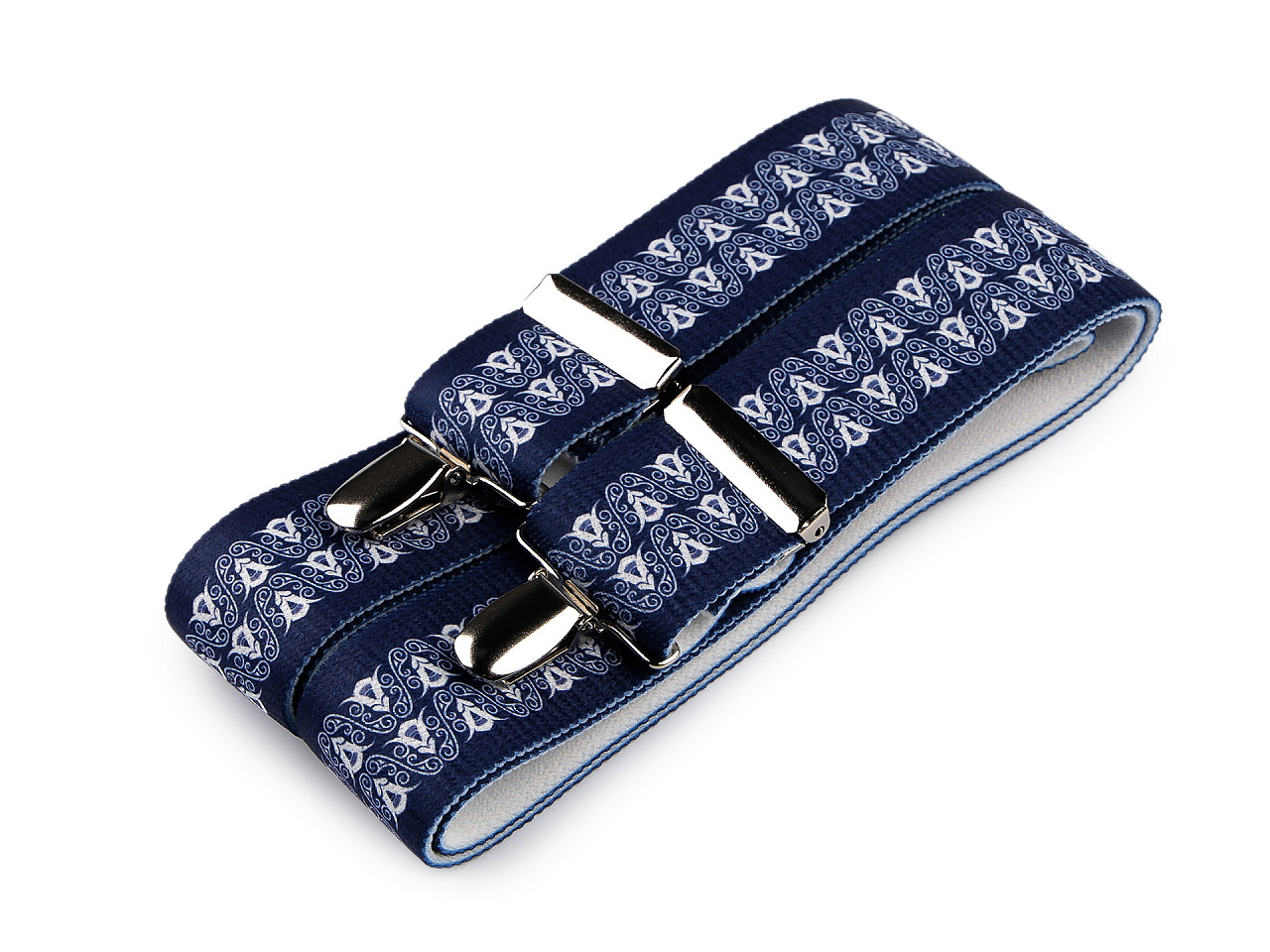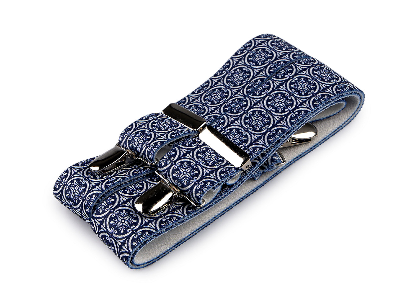 Traky s modrotlačovým motívom využijú páni aj dámy, ktoré ich môžu skombinovať so sukňou. Sú kvalitnej českej výroby , elastický materiál umožňuje pohodlné nosenie . Zadná vsadka z eko kože im dodáva štýlový vzhľad. K nohaviciam či sukni sa upevňujú na tri kovové žabky - dve vpredu a jednu vzadu. Dĺžku si môžete nastaviť.
