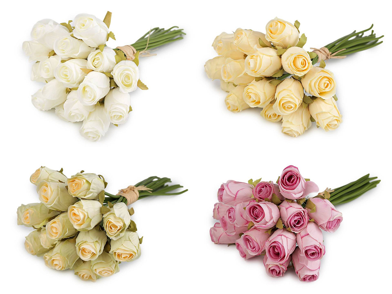 Zväzok umelých ruží je elegantný a nadčasový doplnok, ktorý vynikne v každom interiéri. Ruže môžete dať do vázy, ale tiež zakomponovať do kvetinových väzieb či vencov. Vnútri stoniek je drôt. Zväzok 16 kusov je previazaný papierovým lykom.