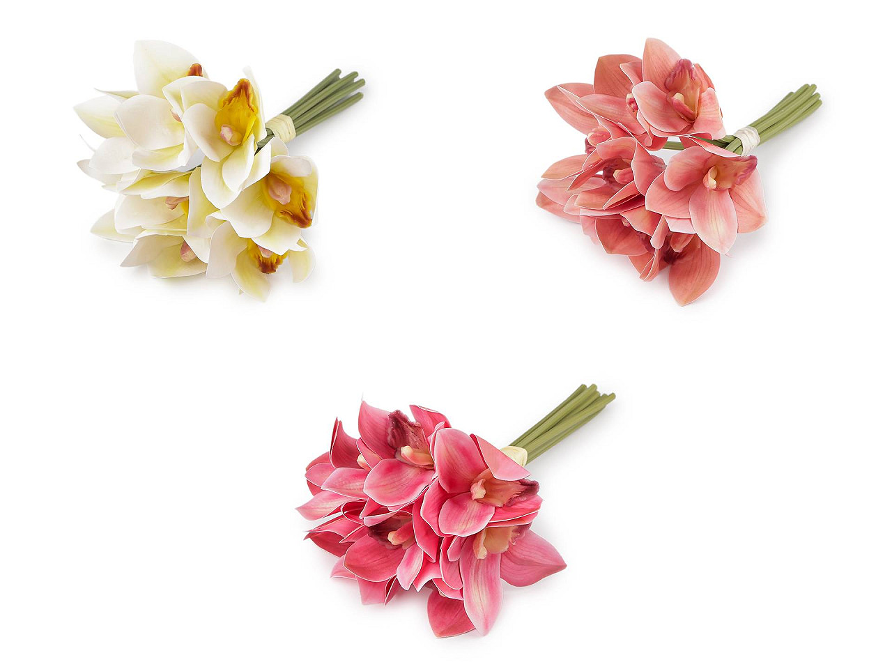 Umelé exotické orchidey svojim spracovaním napodobňujú prirodzenú eleganciu pravých orchideí a sú skvelou voľbou pre dlhodobú dekoráciu bez obáv z vädnutia či nutnosti zalievania. Vyniknú vo váze, v kvetinových väzbách a aranžmánoch a jednotlivé stonky s kvetmi môžete zakomponovať aj do dekoračných vencov. Vnútri stoniek je drôt.