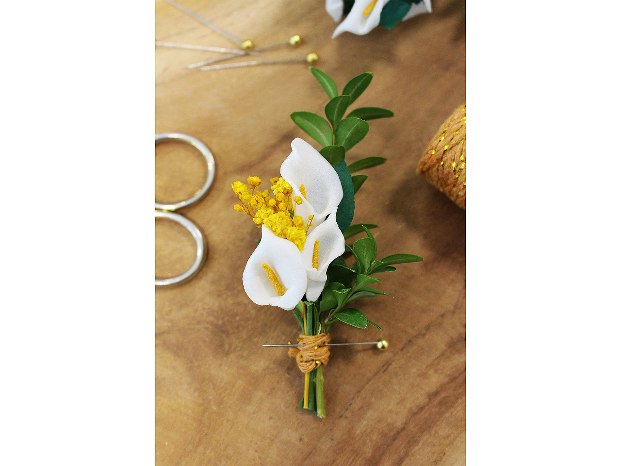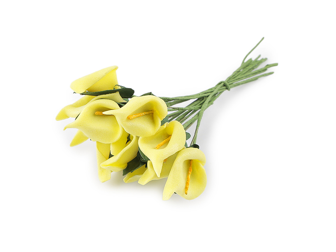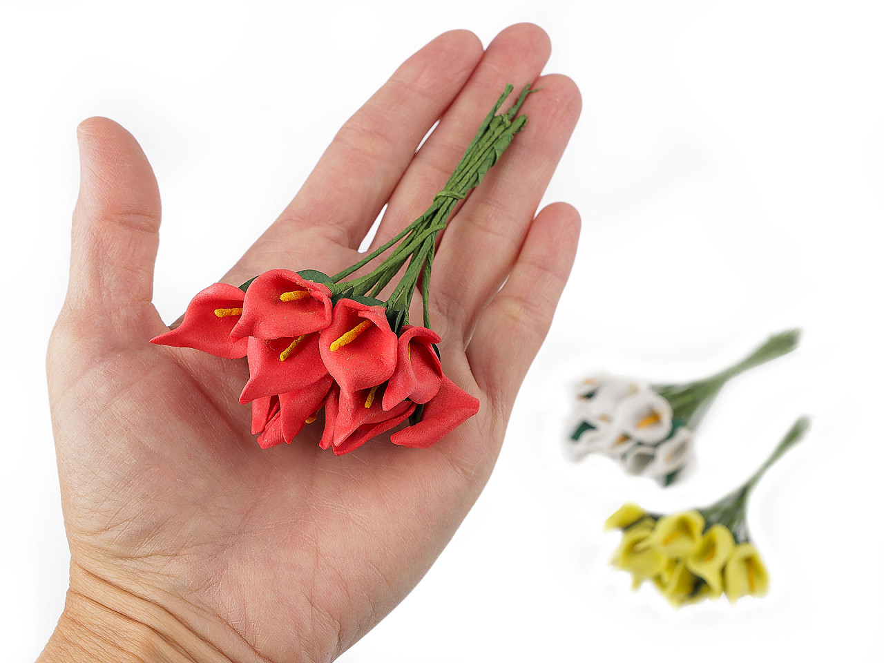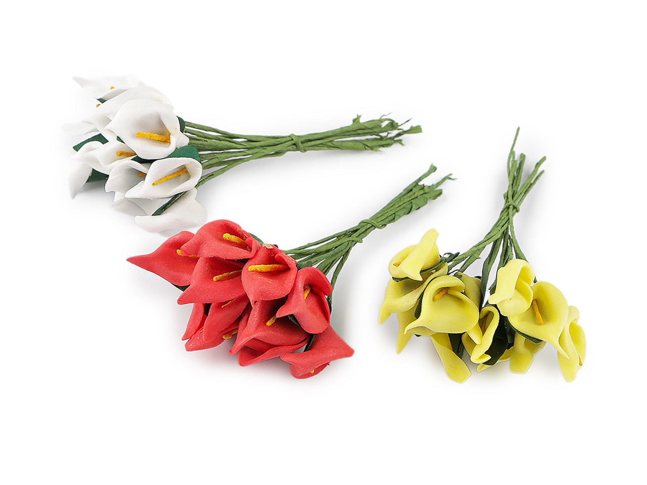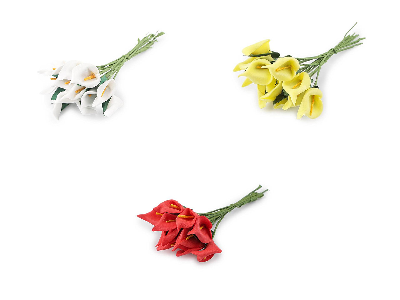 Mini kaly sú vyrobené z penovej gumy a zaujímavo prepracované. Drôtik, ktorý je ich súčasťou, uľahčuje pripevnenie a manipuláciu. Kaly využijete do svadobných voničiek, na vence aj na výrobu rôznych dekorácií a kvetinových aranžmánov.