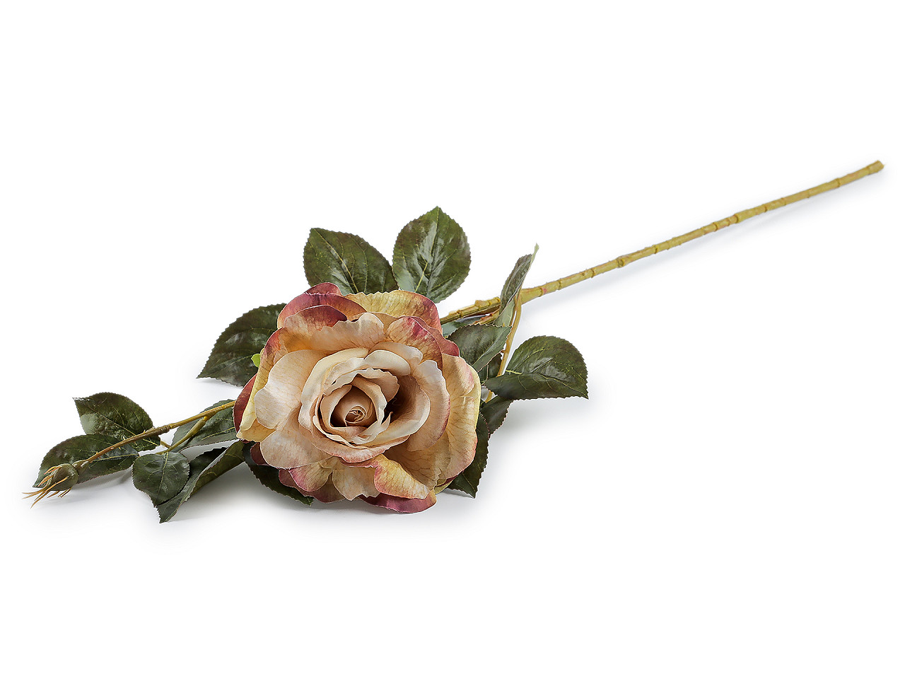 Umelá ruža vyniká eleganciou a kvalitou. Jemné tónované zafarbenie a pútavé detaily jej dodávajú realistický vzhľad . Ruža vynikne v jednoduchej váze, ale aj v kvetinových väzbách a aranžmánoch. Bez nutnosti pravidelnej údržby alebo zalievania bude vždy vyzerať sviežo a poskytne interiéru nadčasový šarm. Vnútri stonky je drôt.