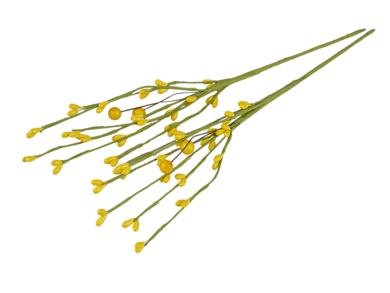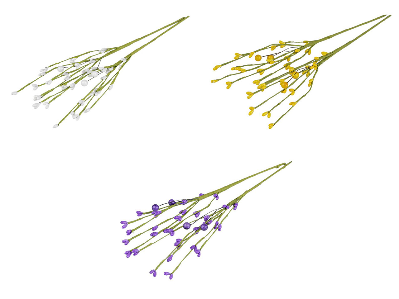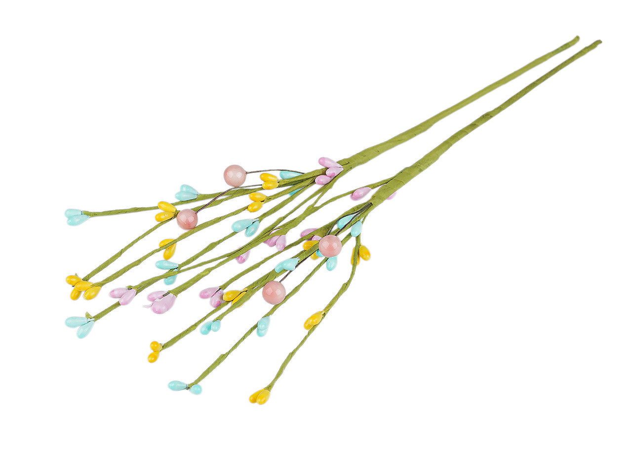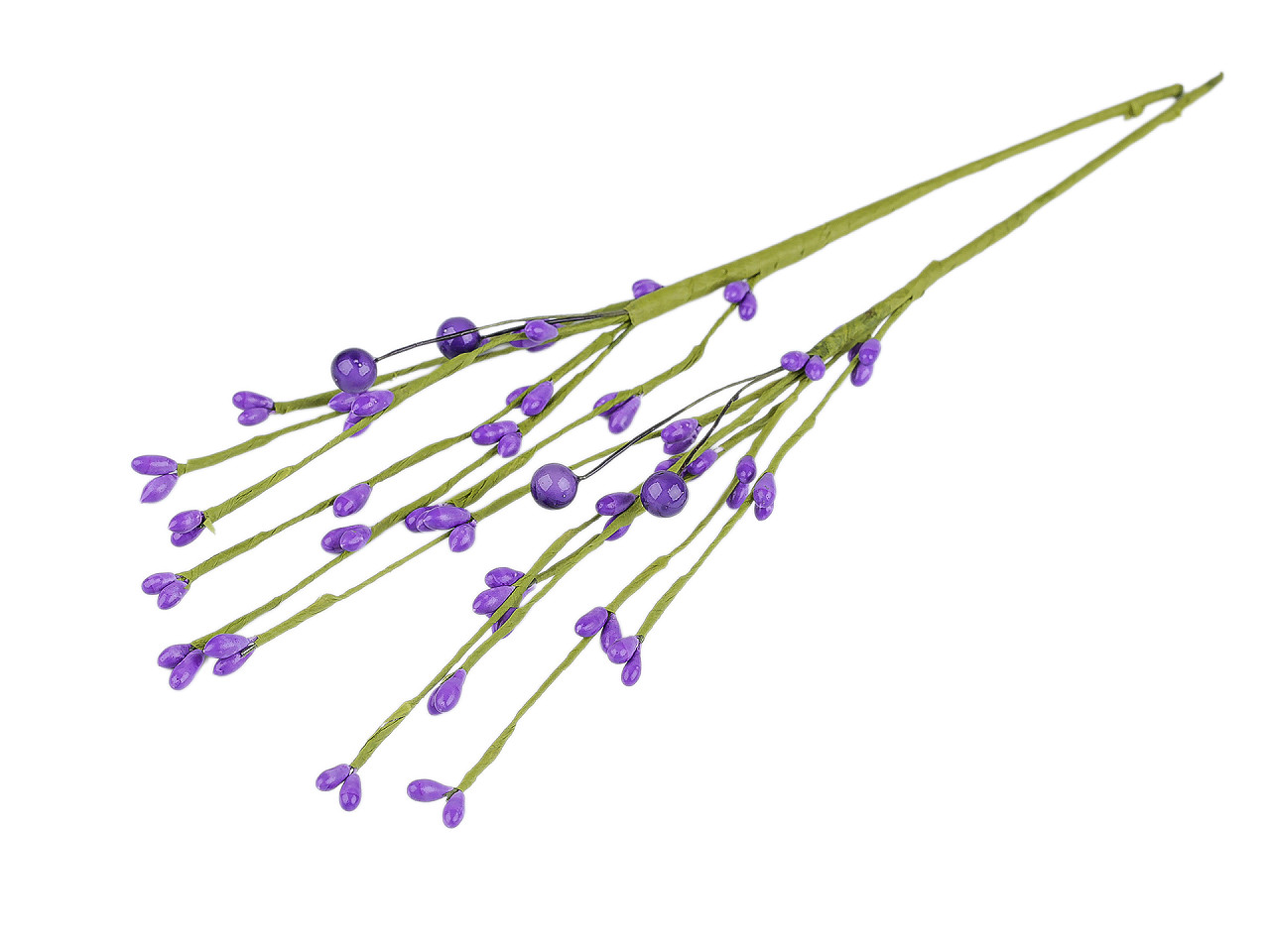 Dekoračná vetvička s púčikmi je vyrobená z drôtika, ktorý je omotaný floristickou páskou, dá sa ľahko ohýbať a tvarovať. Vetvička dodá sviežosť kvetinovým väzbám, dekoračným vencom a aranžmánom. Využijete ju aj na výrobu čeleniek do vlasov. Jednotlivé stonky môžete odstrihnúť a použiť zvlášť.
