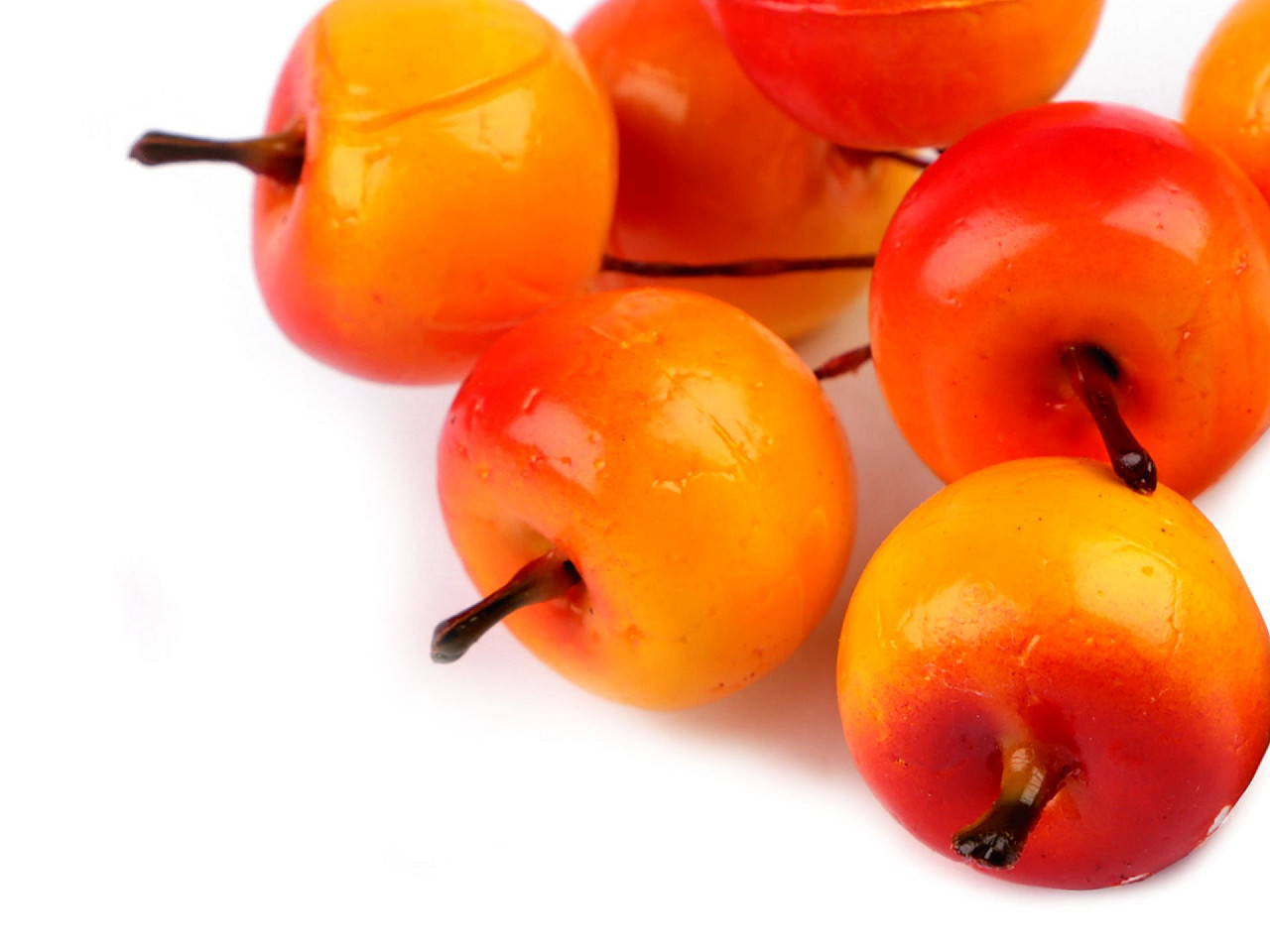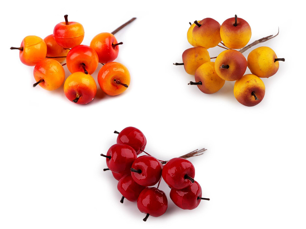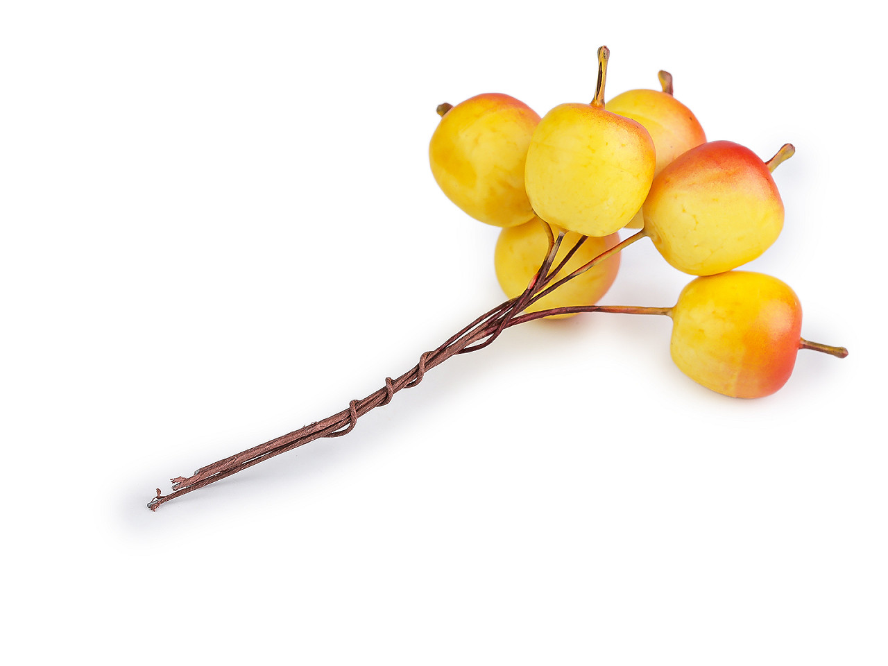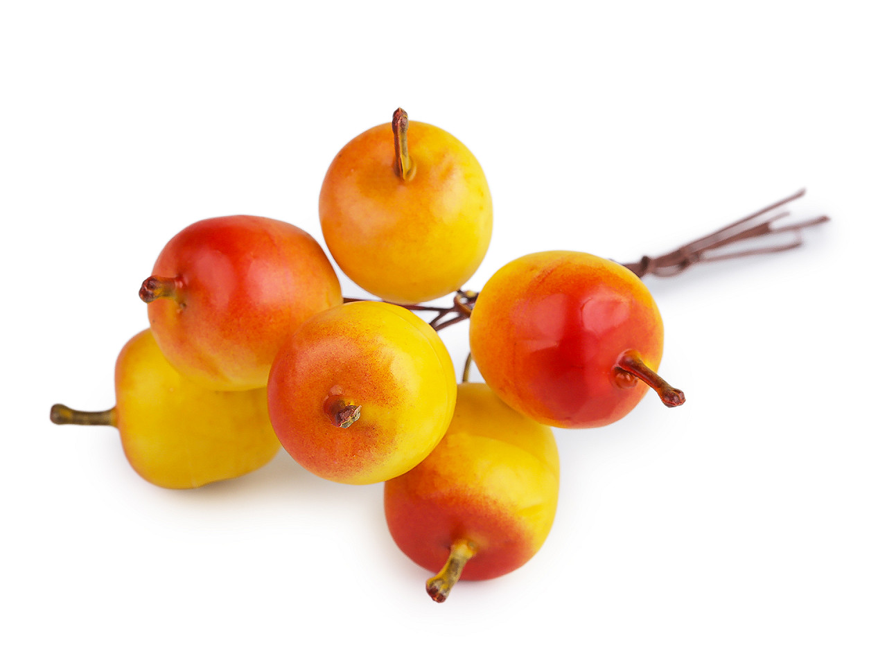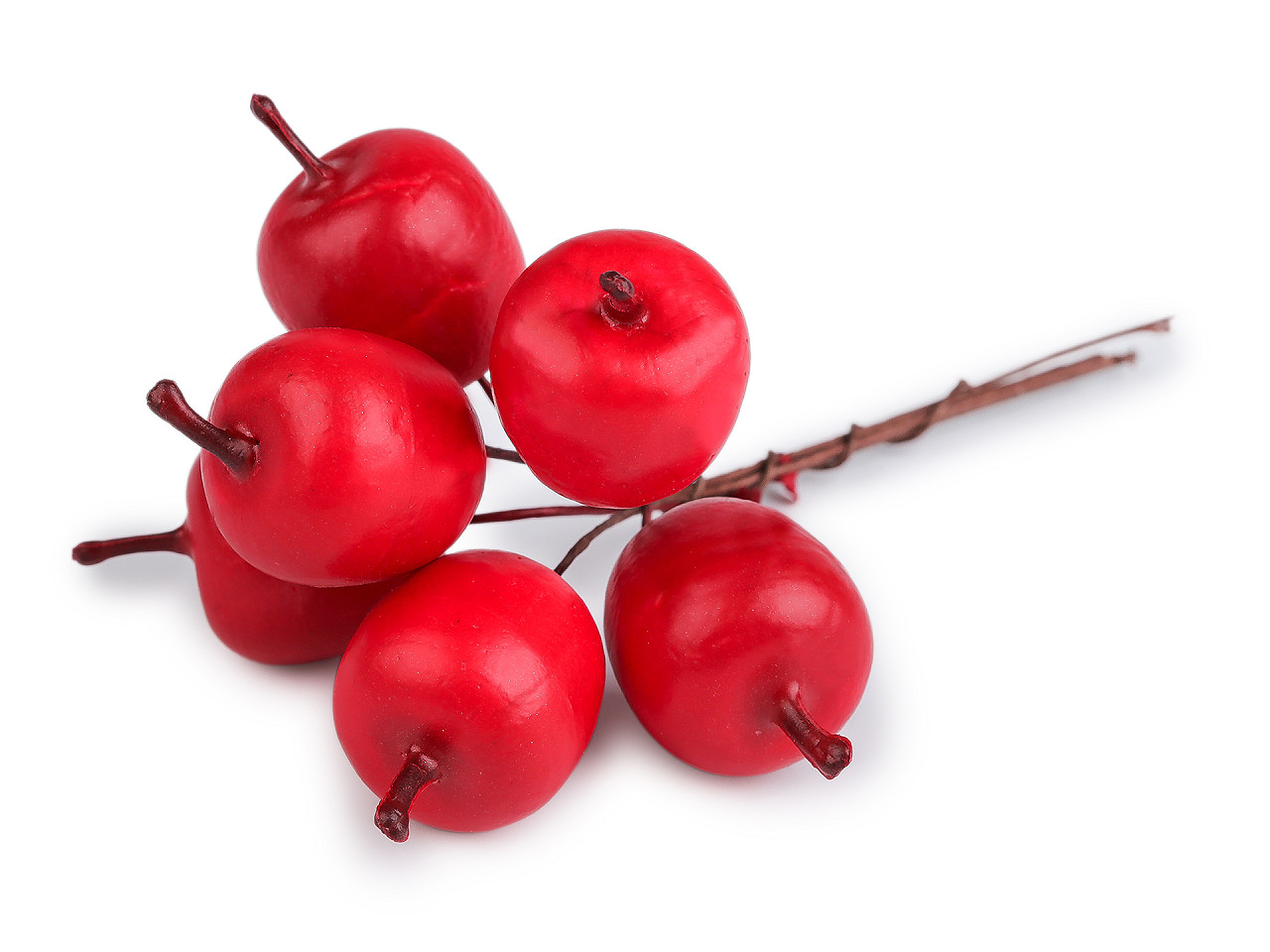 Dekoračné jabĺčka sú pripevnené na drôtiku, ktorý sa dá dobre tvarovať. Ľahko sa zapichujú do polystyrénových polotovarov, vencov, kvetinových väzieb a pod. Zväzok 6 ks je previazaný floristickou páskou. Vplyvom výroby môžu byť niektoré jabĺčka zlepené dohromady.
