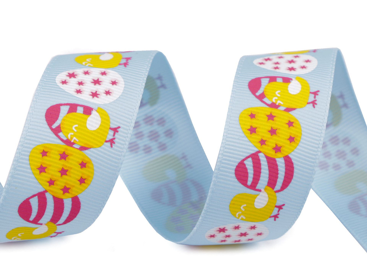 Dekoračná rypsová stuha s kraslicami a kuriatkami je veľmi kvalitná. Na povrchu má typické jemné rebrovanie. Potlač je jednostranná. Použitie: Stuha je vhodná na veľkonočné tvorenie a aranžovanie, zdobenie vencov a na výrobu rôznych jarných dekorácií.