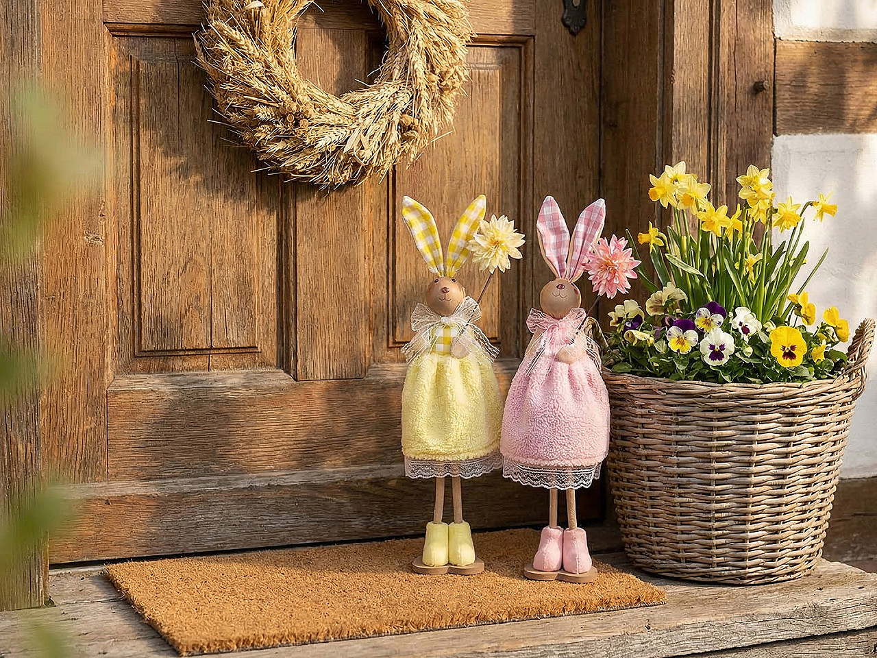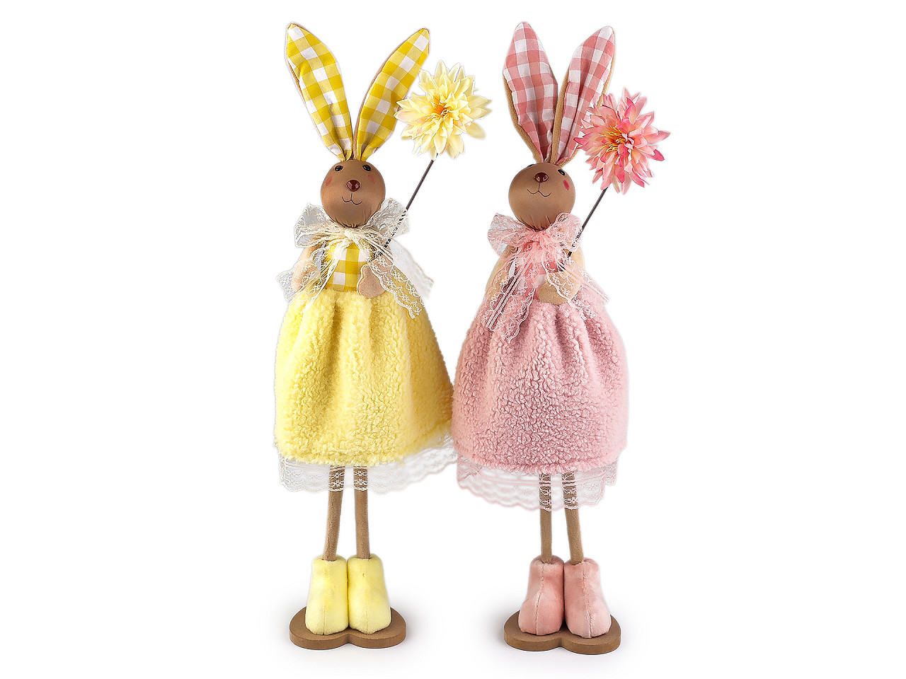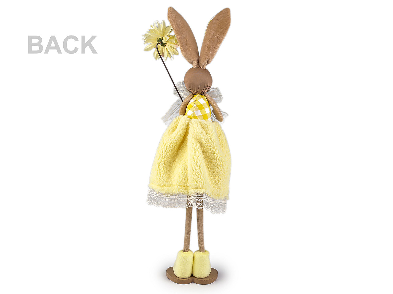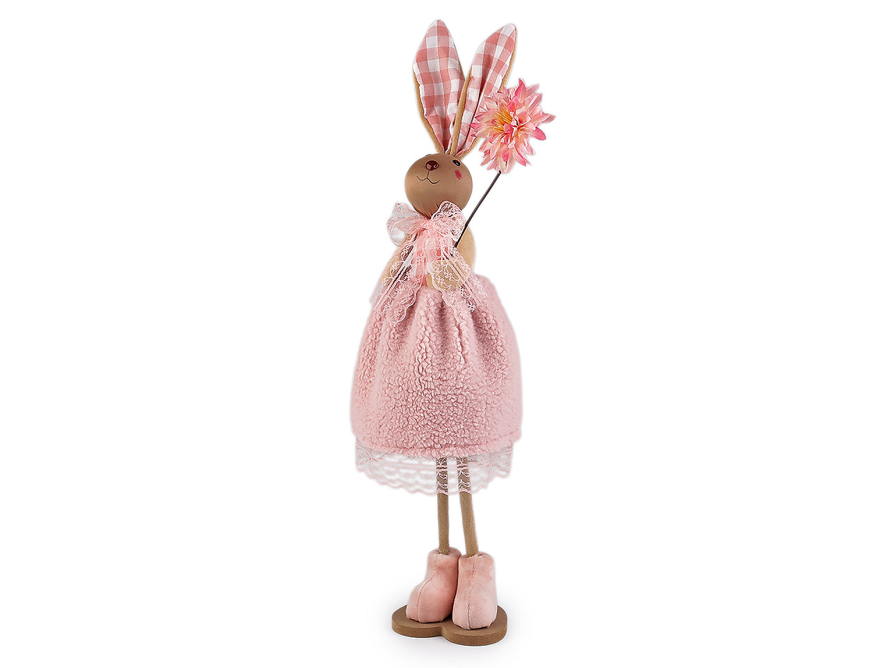 Veľkonočný zajačik s kvetom je ideálnym doplnkom pre jarnú sezónu a veľkonočnú výzdobu. Vnesie do vášho domova hravosť a sviežosť. Zajačik má roztomilý vzhľad, dobrú stabilitu a je ľahký. Sukienka je z jemného plyšu.