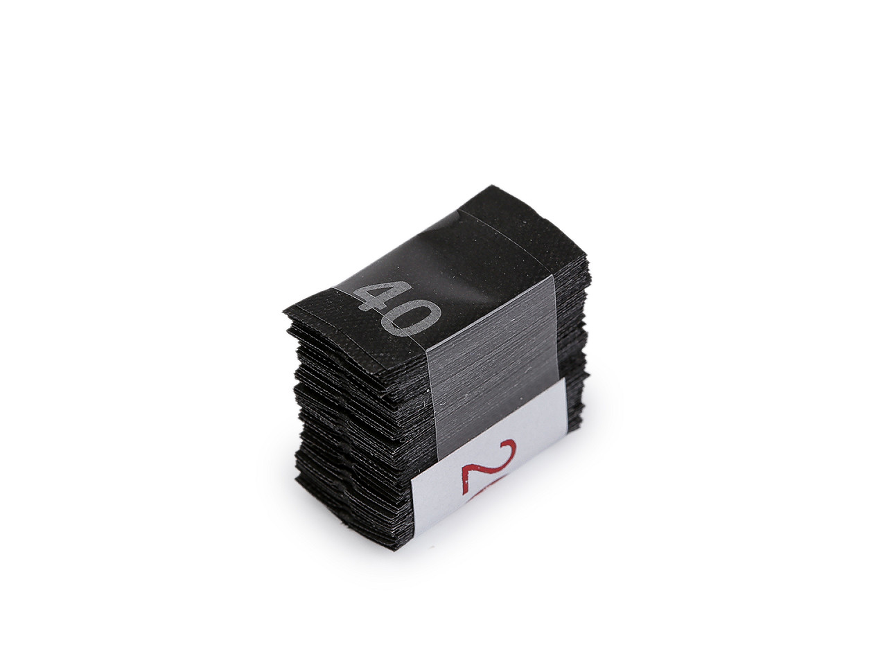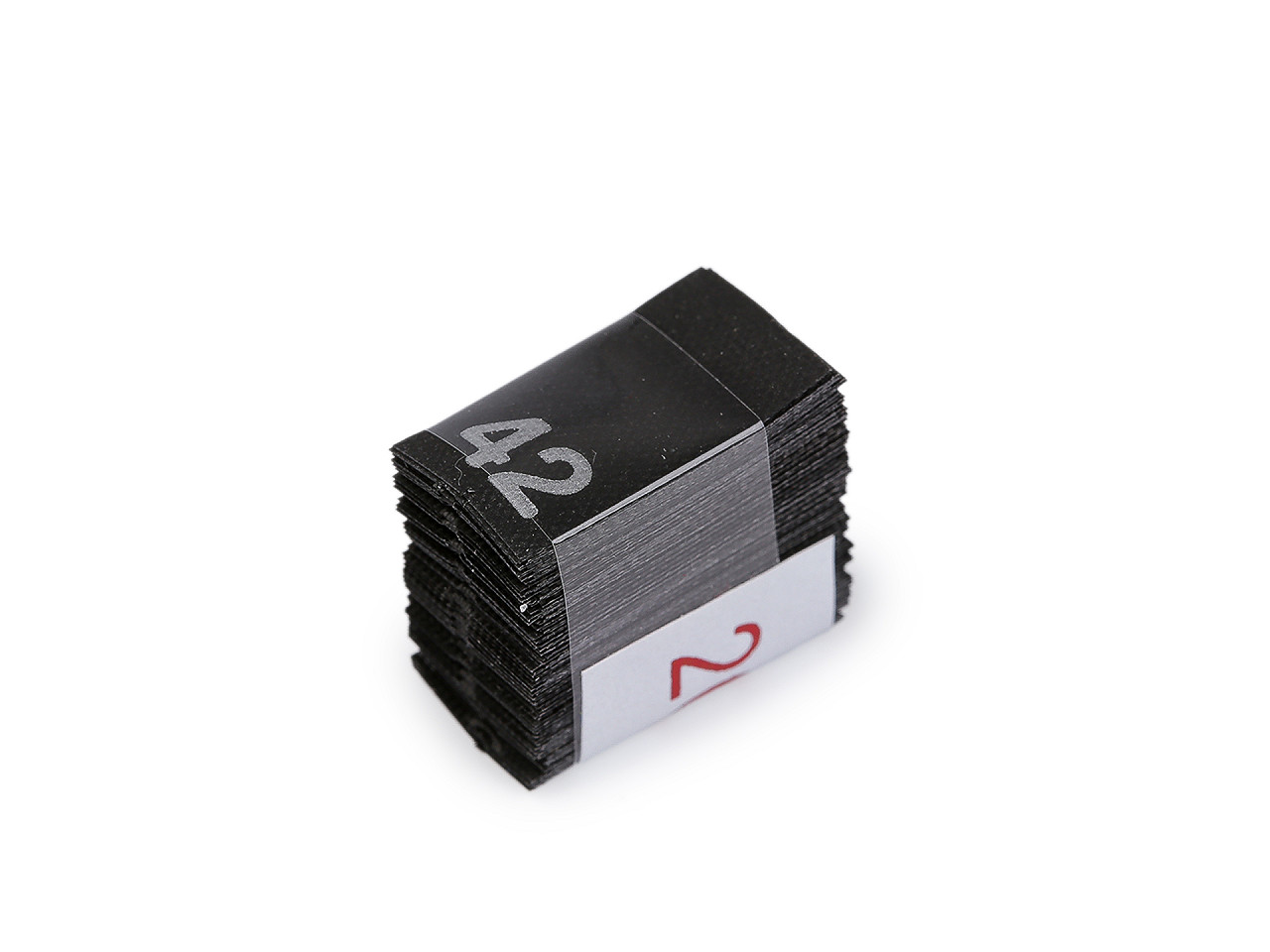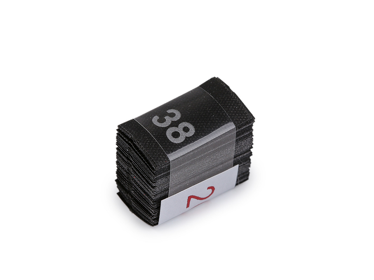 Štítky s označením veľkostí sú vhodné predovšetkým pre šijacie dielne a veľkovýrobu odevov. Všívajú sa do oblečenia. Možno ich prať.