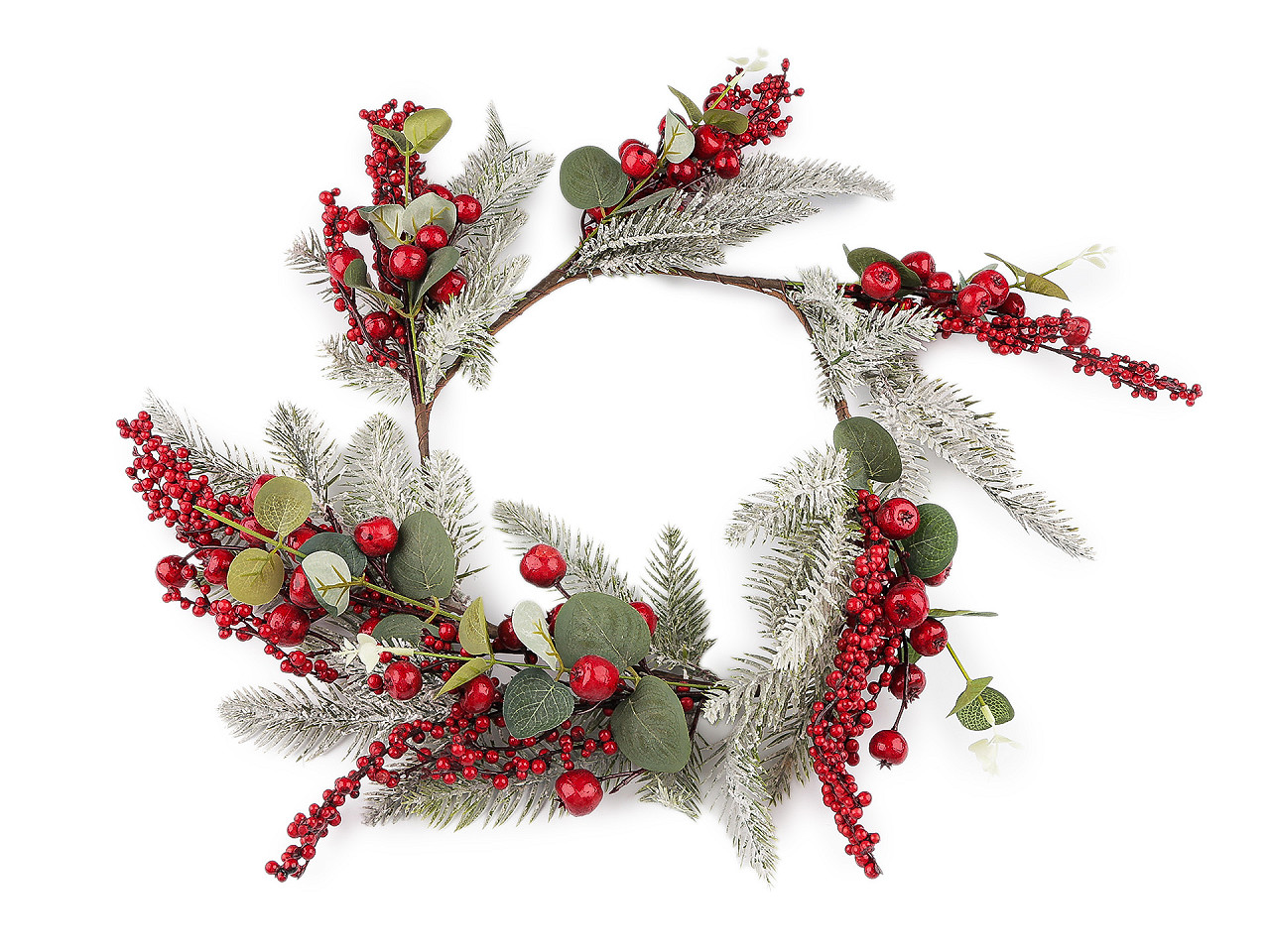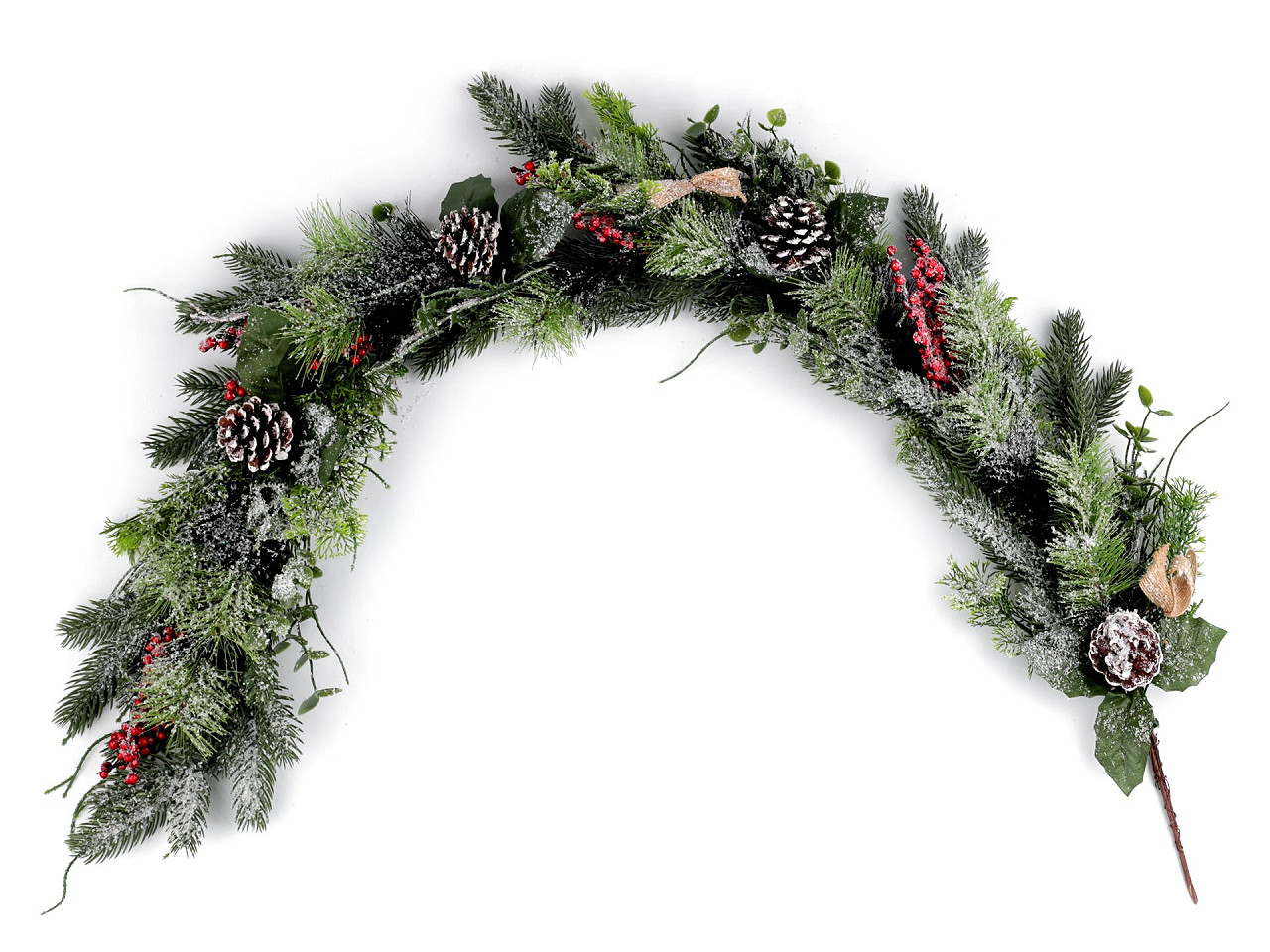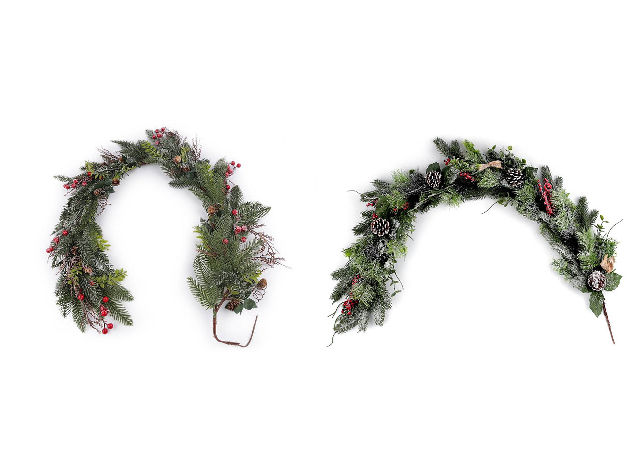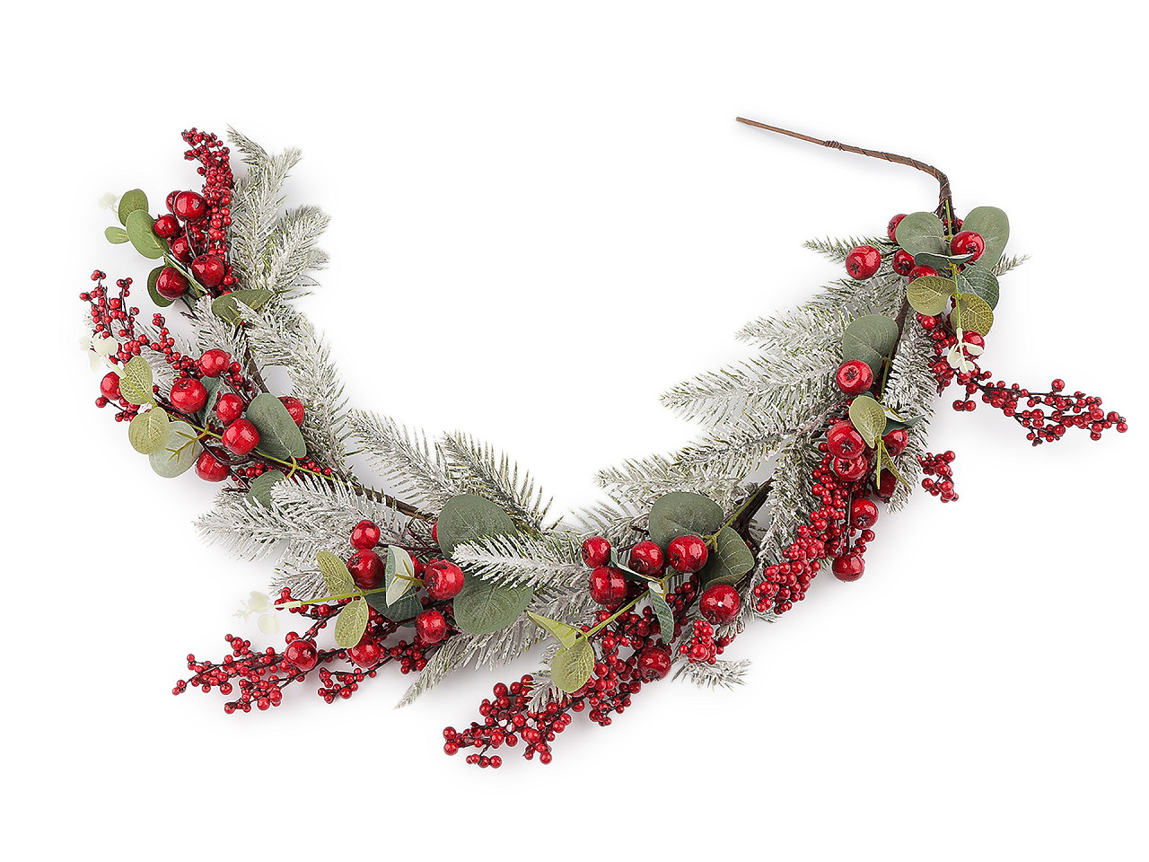 Dlhá vianočná girlanda je tvarovateľná a bohato ozdobená vetvičkami, bobuľami a jabĺčkami . Možno ju nechať v natiahnutom stave alebo ju stočiť do venca. Využijete ju na ozdobenie dverí, krbu, okien alebo stola, hlavne počas zimných sviatkov.