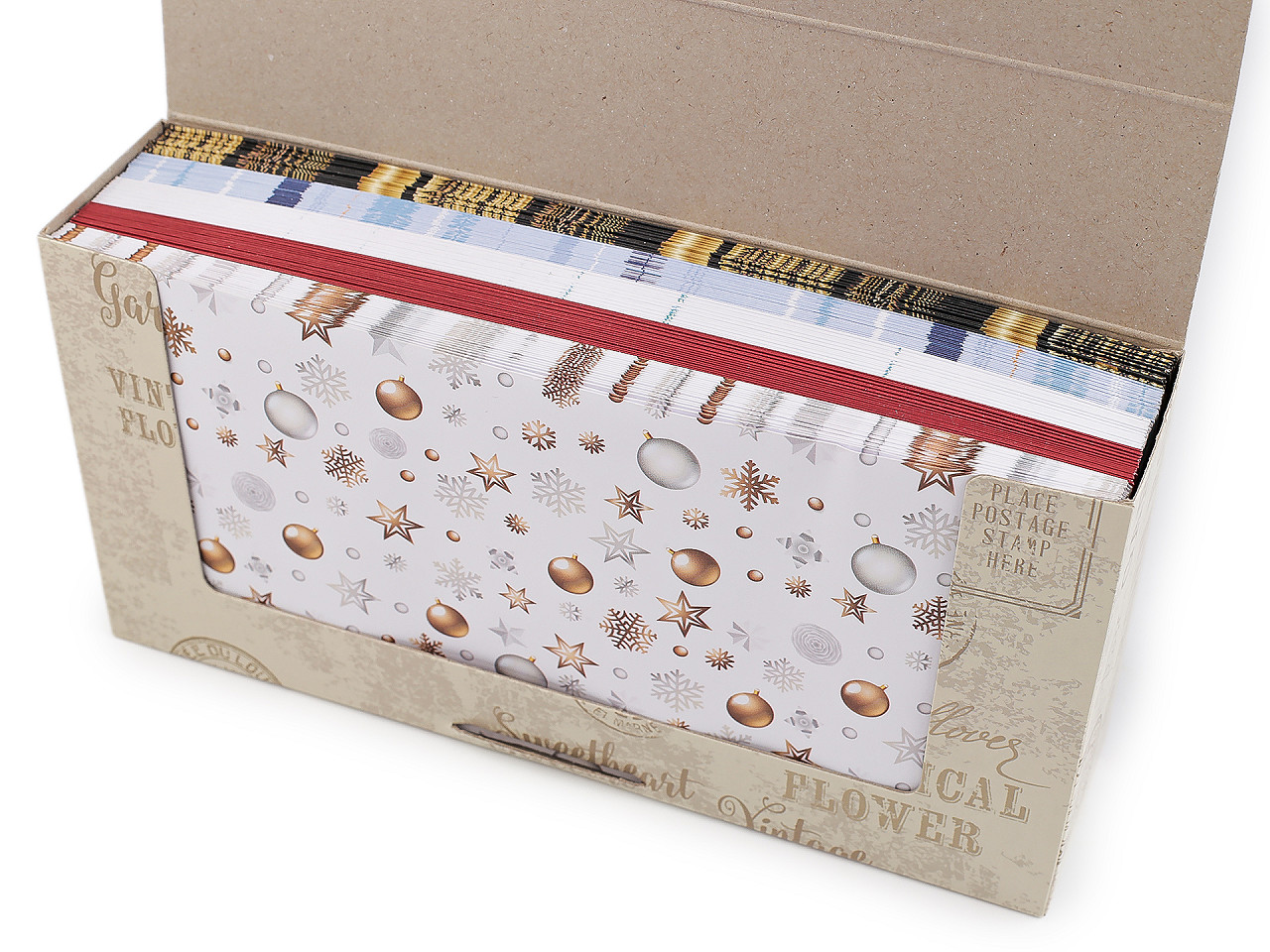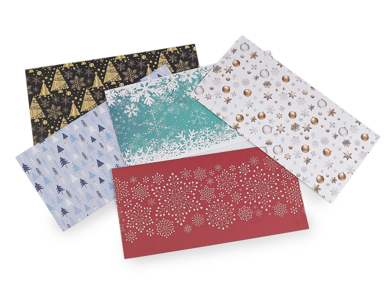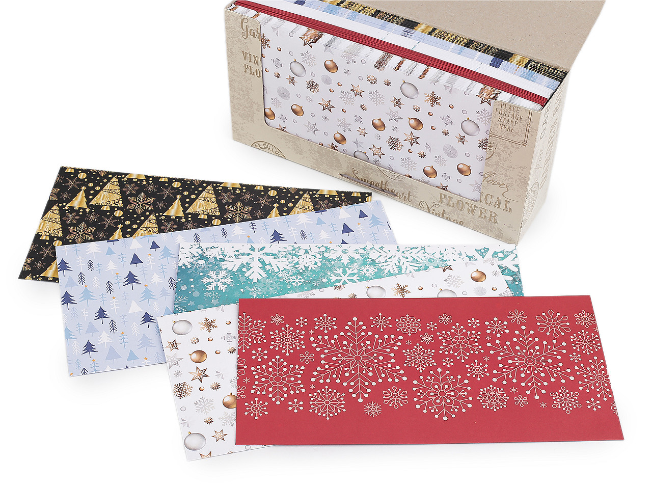Vianočná papierová obálka je ideálnou voľbou pre tých, ktorí chcú darovať peniaze štýlovo a s vianočnou náladou. Využijete ju nielen na peniaze, ale aj na darčekové poukazy a priania. Obálka je typu DL , dovnútra sa zmestí papier A4 preložený na tretiny. Vďaka kvalitnému a trvanlivému prúžku s lepidlom je listovú obálku ľahké zalepiť . V originálnom balení v krabičke nájdete 5 motívov po 20 ks – celkom je tam teda 100 ks obálok.