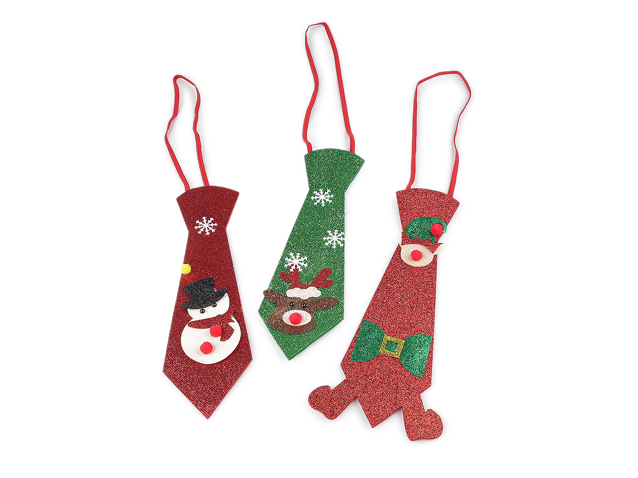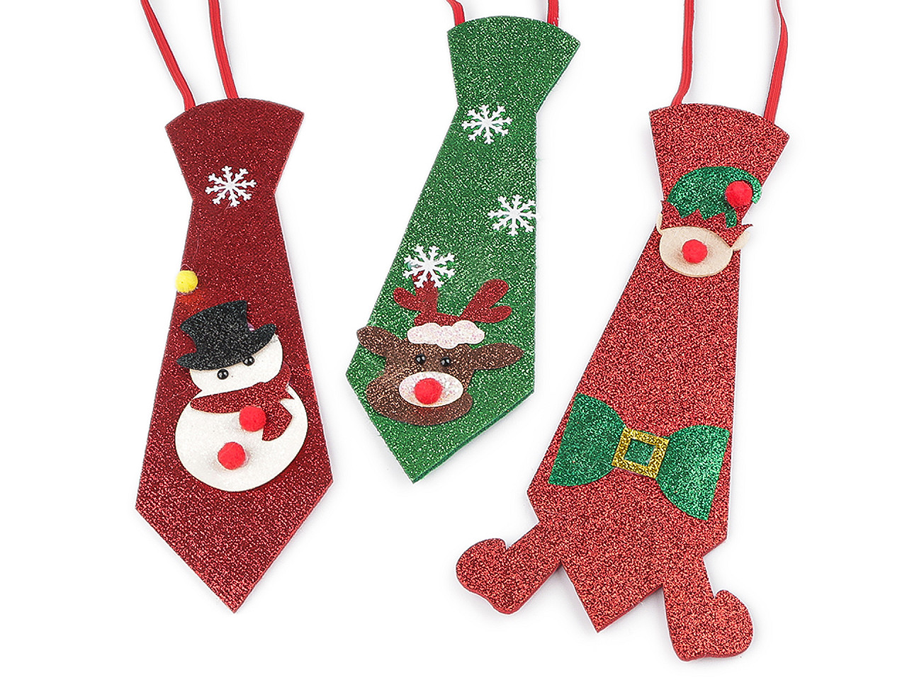 Vtipná filcová kravata s vianočnými motívmi sa postará o zábavu na tematických večierkoch, párty, maškarných plesoch, tanečných vystúpeniach aj oslavách. Nezabudnuteľnú atmosféru dodá i rodinným stretnutiam. Vďaka glitrom , ktoré sa pôsobivo trblietajú a neopadávajú, je kravata neprehliadnuteľná. Kravata je na gumičku - odpadá tak zložité uväzovanie uzlov ako je na klasických kravatách.