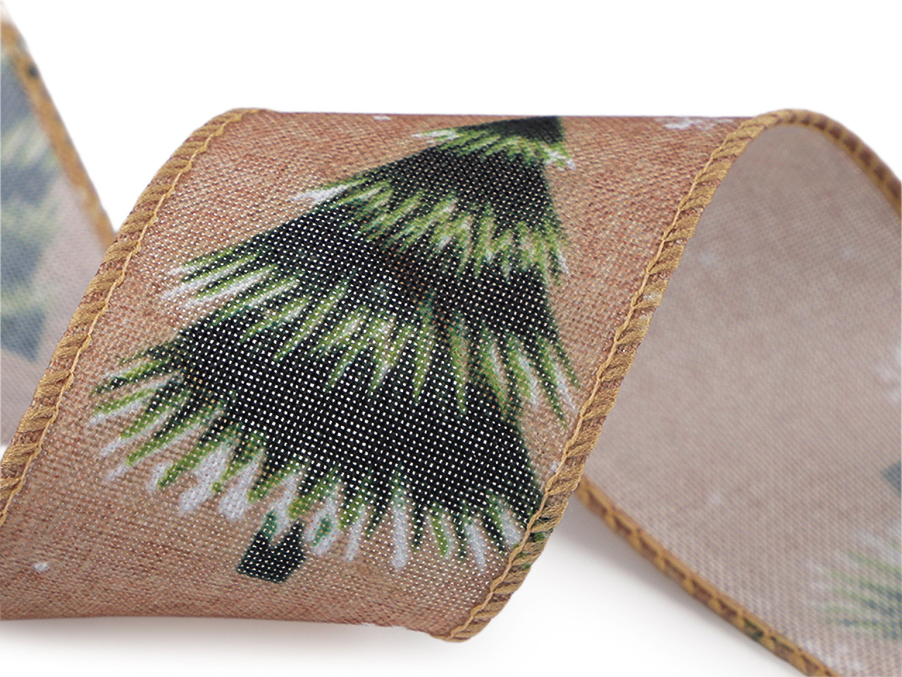 Vianočnú dekoračnú stuhu zdobí potlač stromčekov a vločiek . Plátnová väzba je kvalitná, veľmi pevná . Vďaka drôtom po stranách sa stuha skvele tvaruje . Je jednostranná. Použitie: Stuhu využijete na vianočné dekorácie aj na balenie darčekov. Je vhodná i na aranžovanie vencov, väzieb a ikebán. Mašle z tejto stuhy výborne držia tvar .